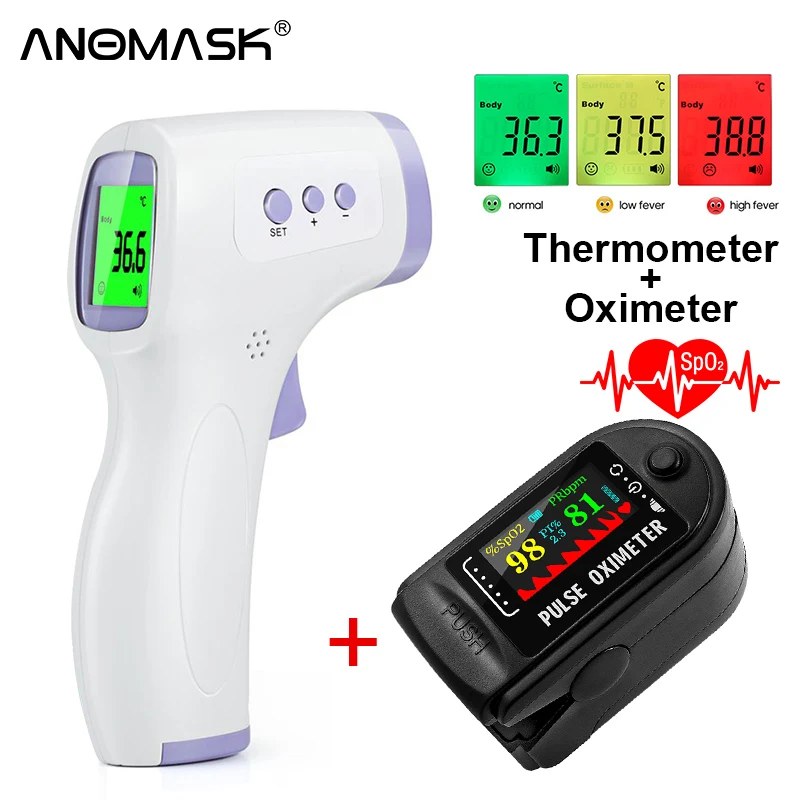Пульсоксиметр SPO2 PR, бесконтактный прибор для измерения температуры крови и уровня кислорода в крови, с аккумулятором