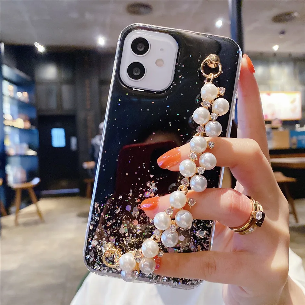 Блестящий Прозрачный жемчужный чехол-браслет для Samsung Galaxy A52 A72 A51 A71 A50 A70 A10 A40 A30 A20 A12 A42 M31S M21 A31 A11 A21S, чехол