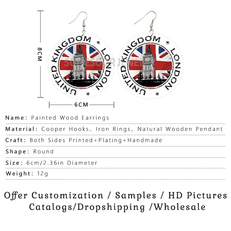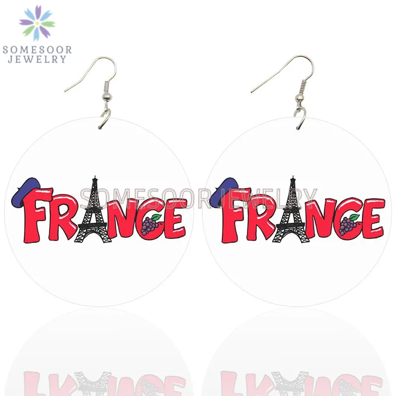 Деревянные висячие серьги SOMESOOR, с изображением Французской Эйфелевой башни, с изображением флага Великобритании, висячие украшения для женщин, подарки