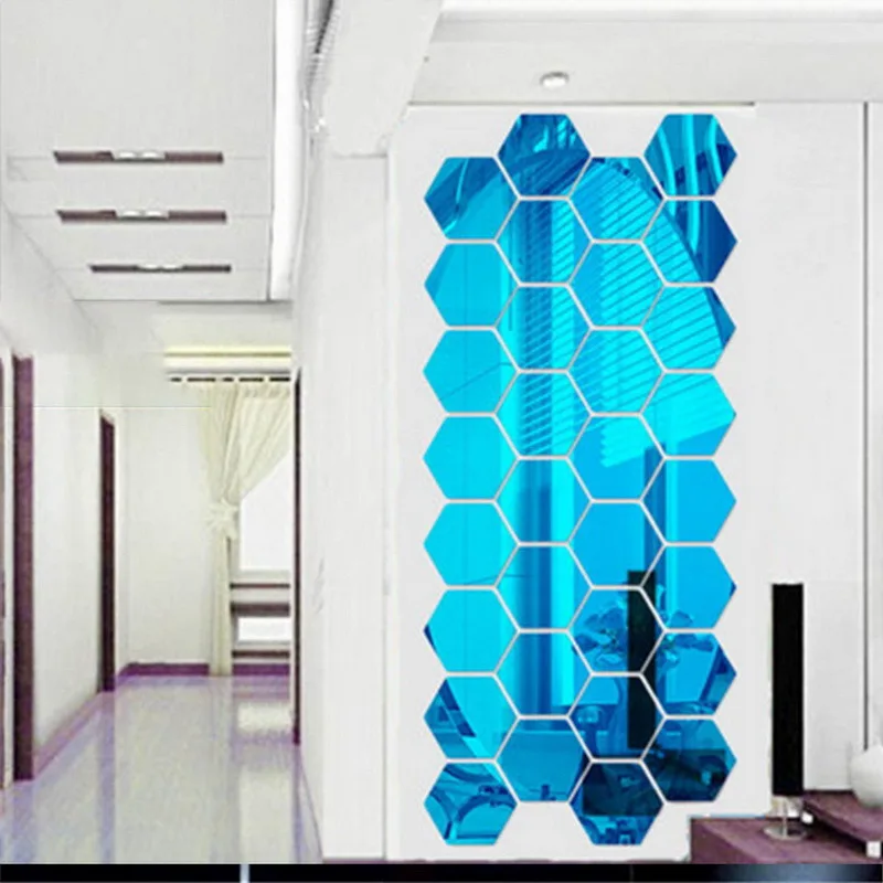 12 шт. 3D шестигранные акриловые зеркальные настенные стикеры s DIY искусство настенный Декор стикеры s гостиная Зеркальная Наклейка Золотой Серебряный домашний декор