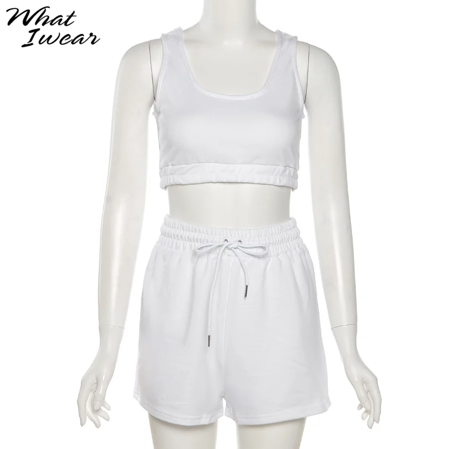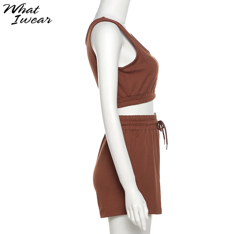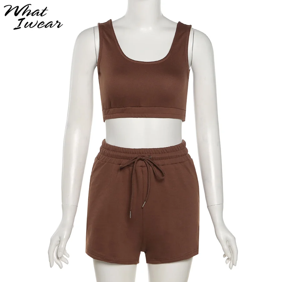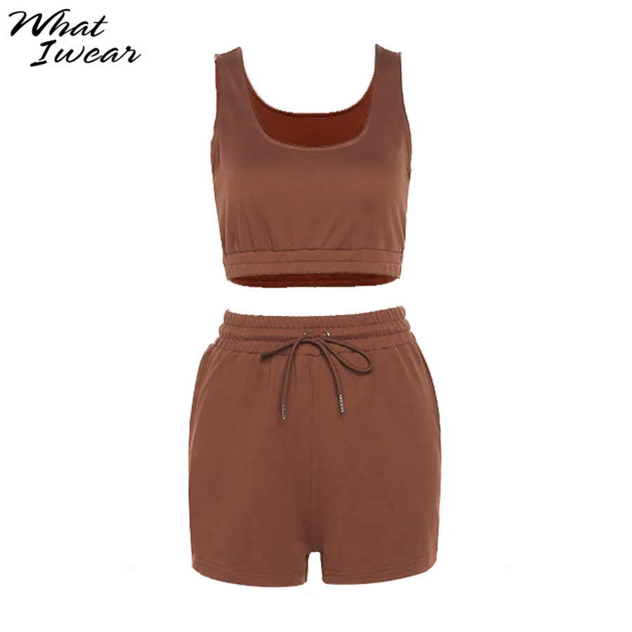Комплект одежды Whatiwear Женский Повседневный из двух предметов, однотонный жилет и шорты на кулиске, спортивный костюм для отдыха, лето 2021