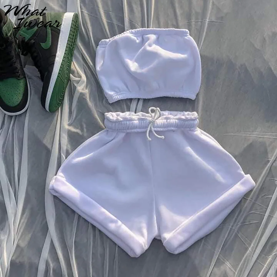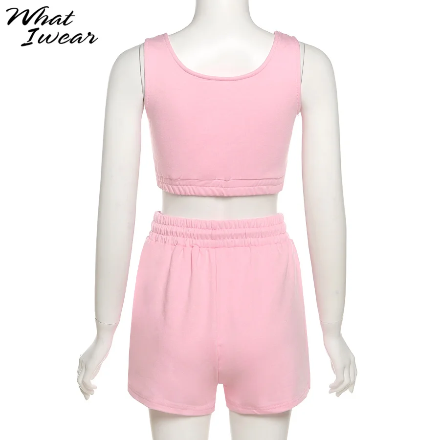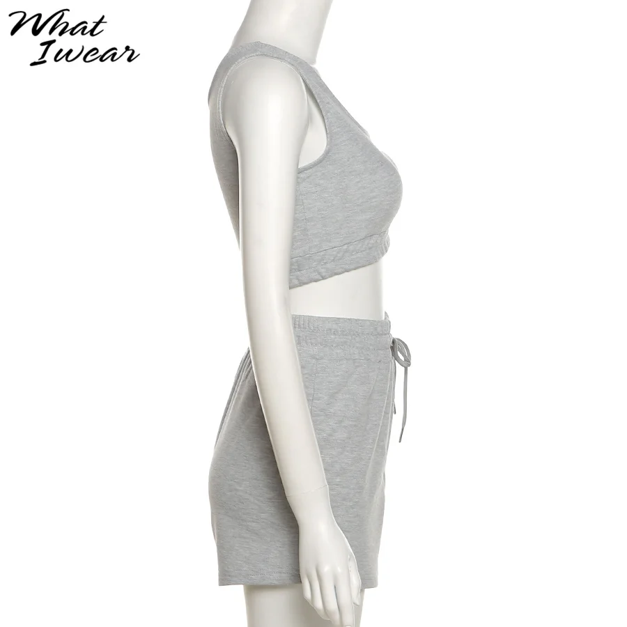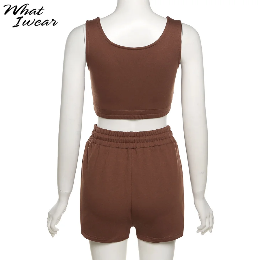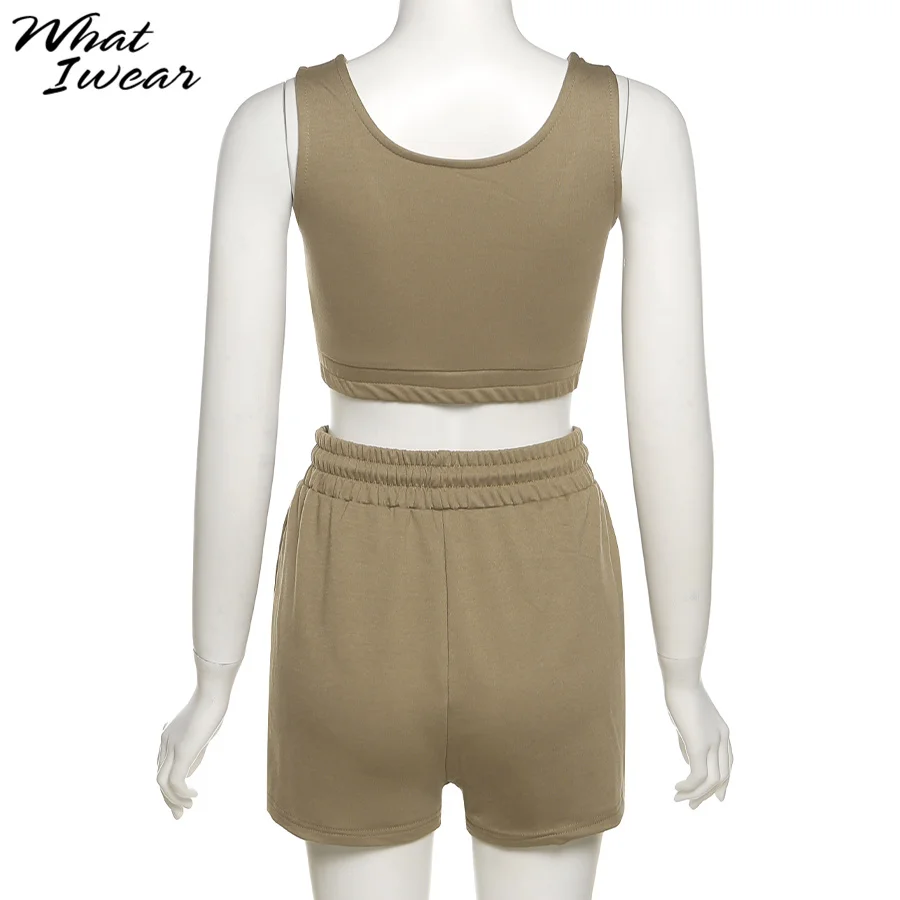 Комплект одежды Whatiwear Женский Повседневный из двух предметов, однотонный жилет и шорты на кулиске, спортивный костюм для отдыха, лето 2021