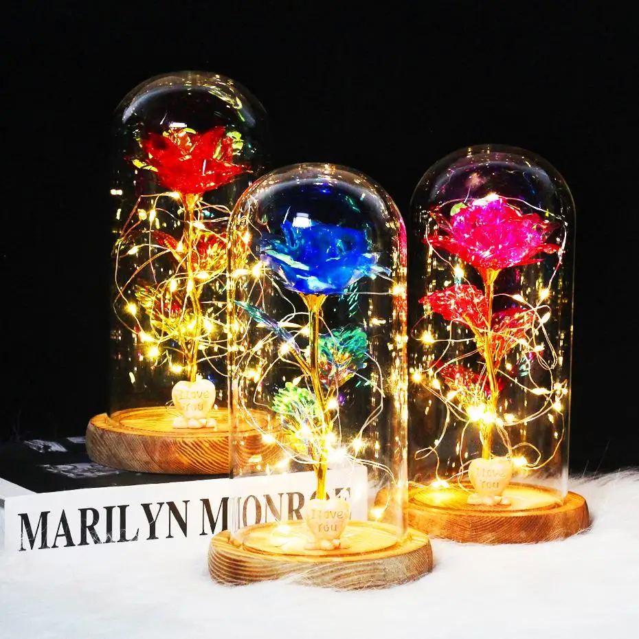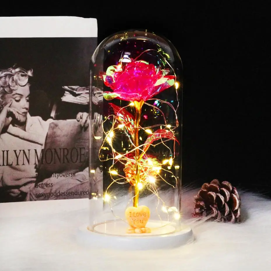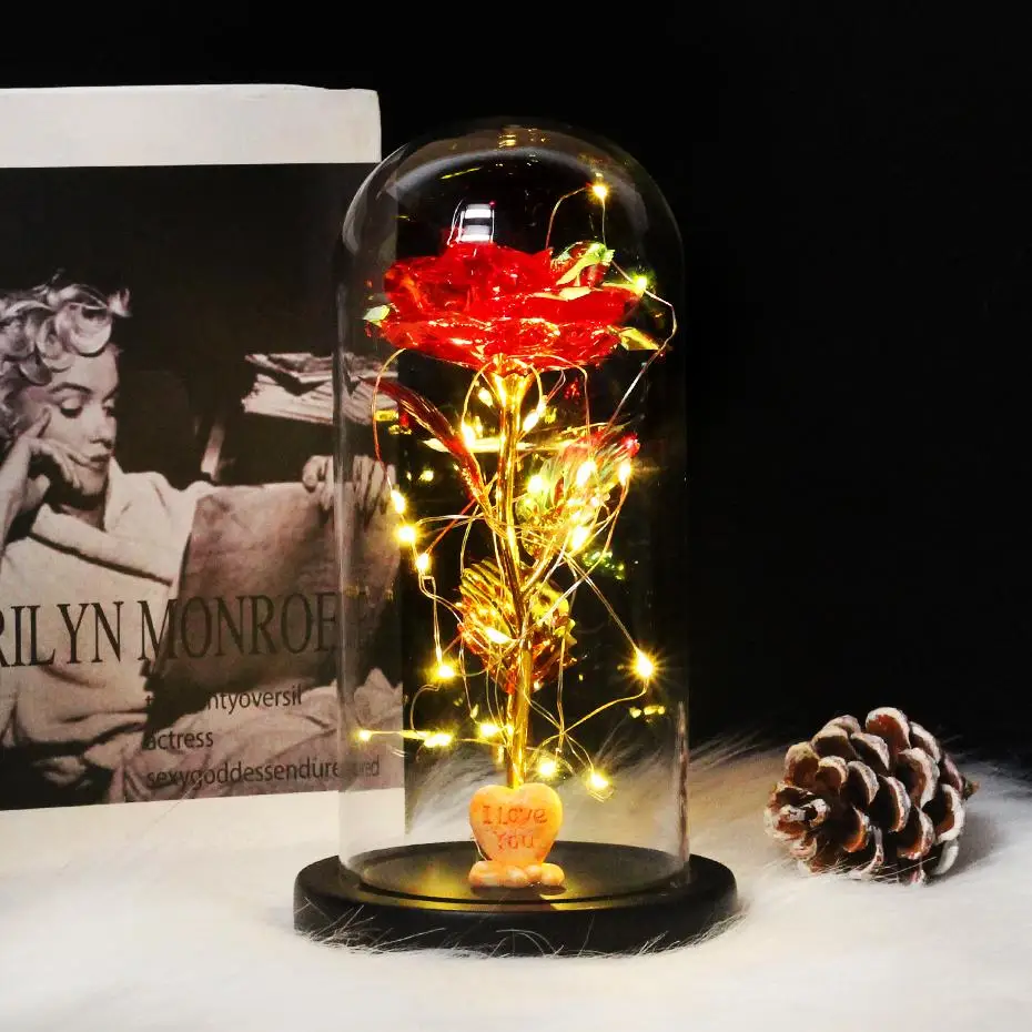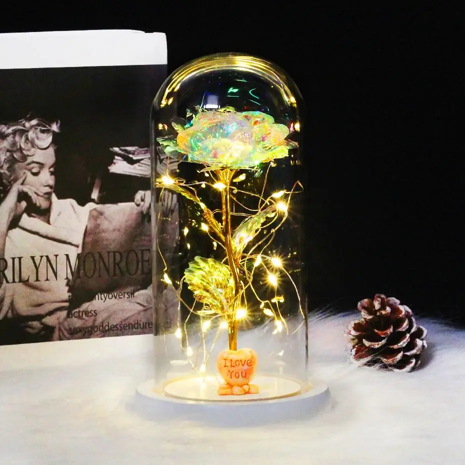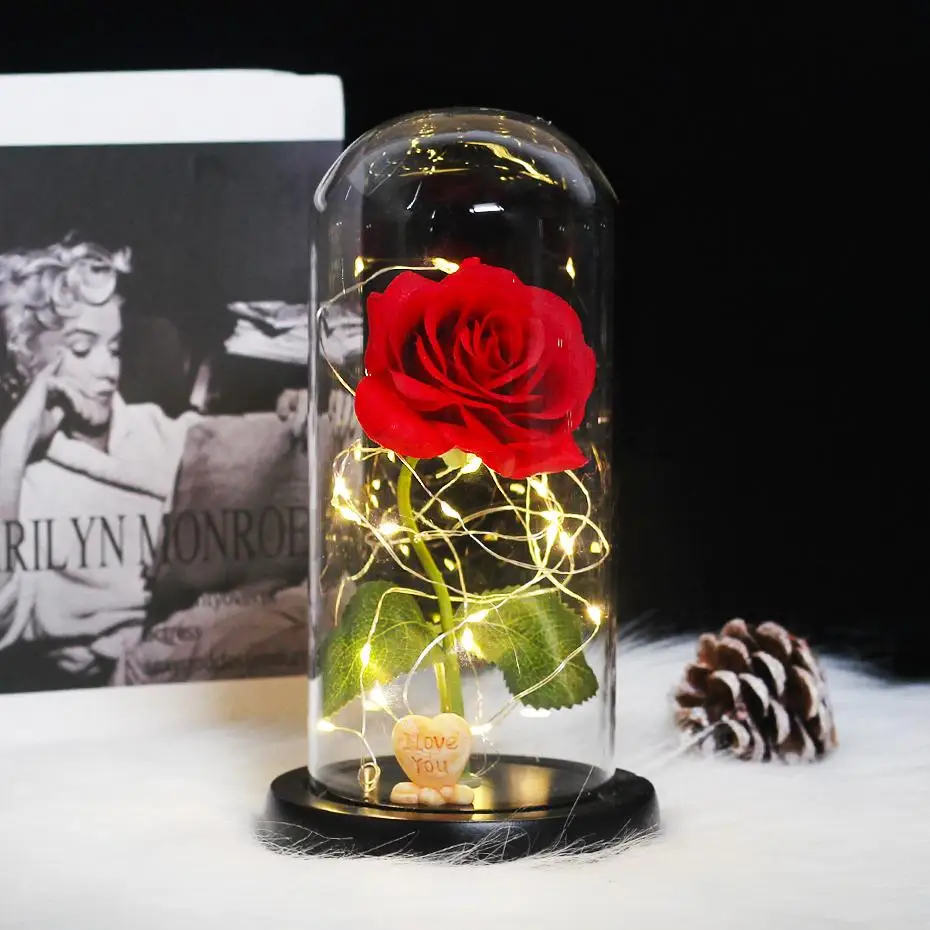 Роза в стеклянном куполе с лампой, искусственный цветок, подарок маме для матери на день рождения, День Святого Валентина, Рождество, годовщину