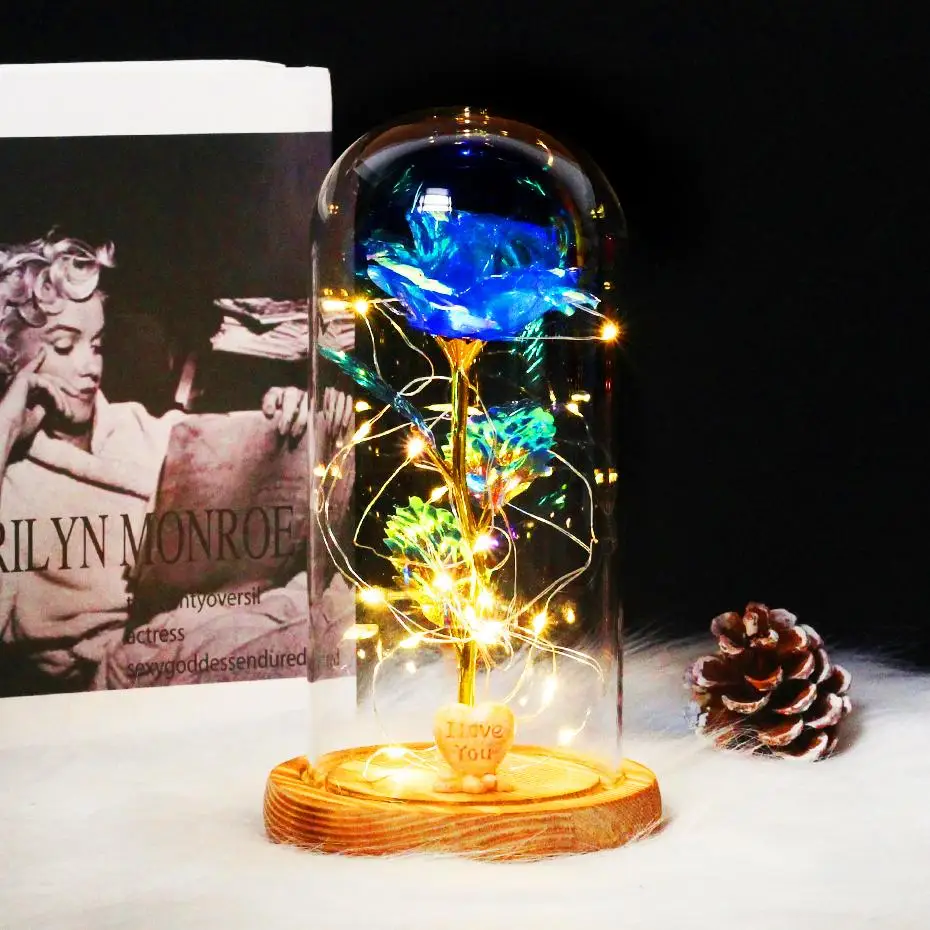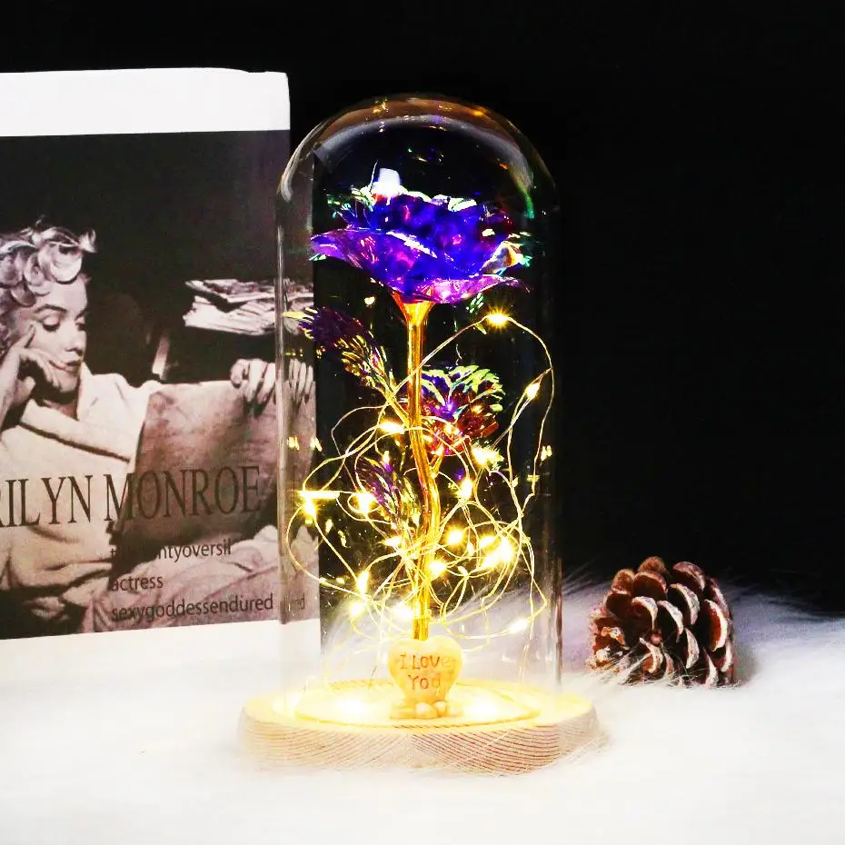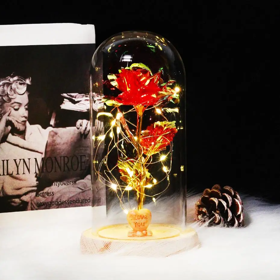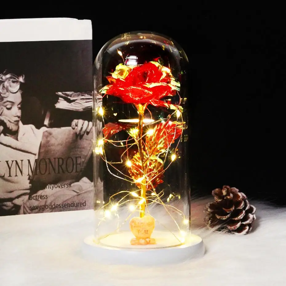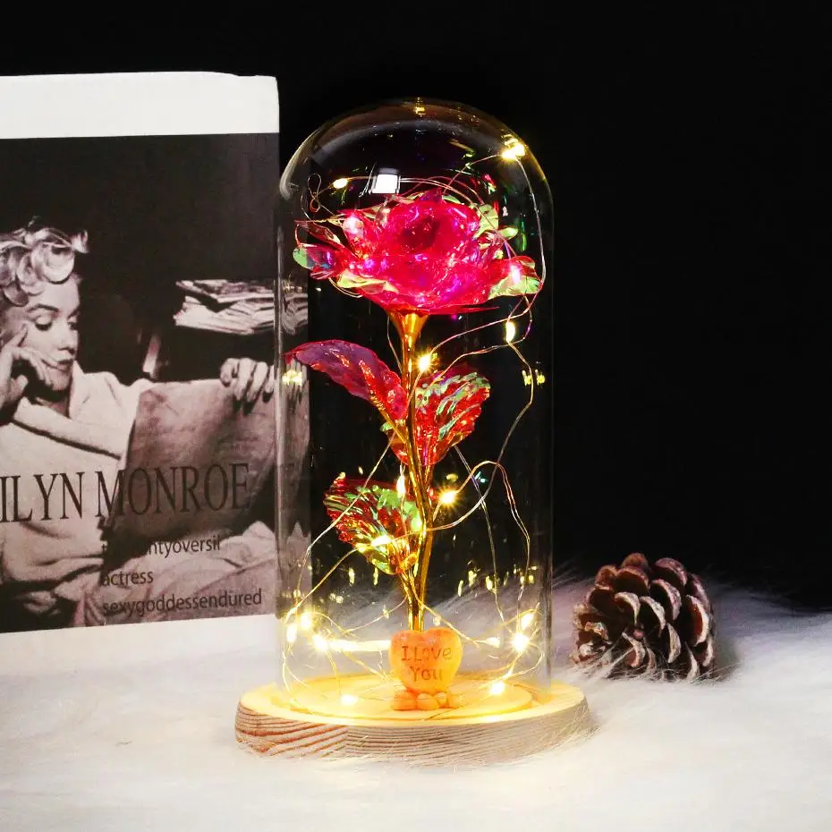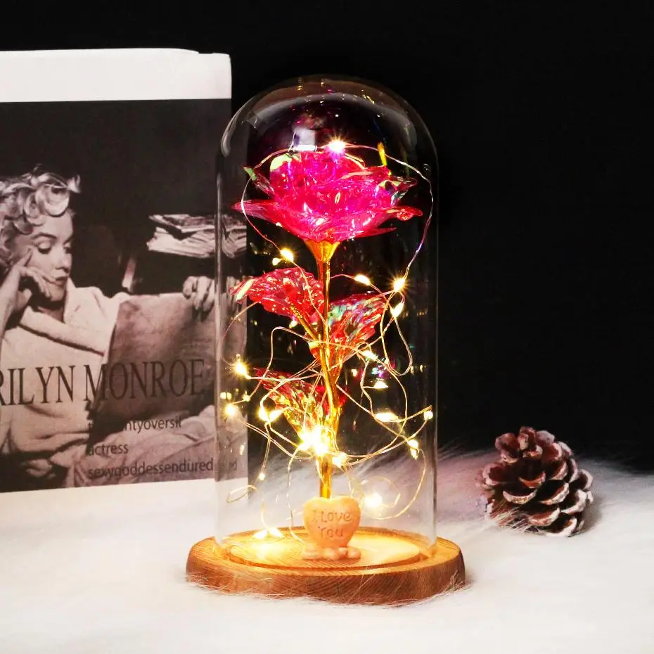 Роза в стеклянном куполе с лампой, искусственный цветок, подарок маме для матери на день рождения, День Святого Валентина, Рождество, годовщину