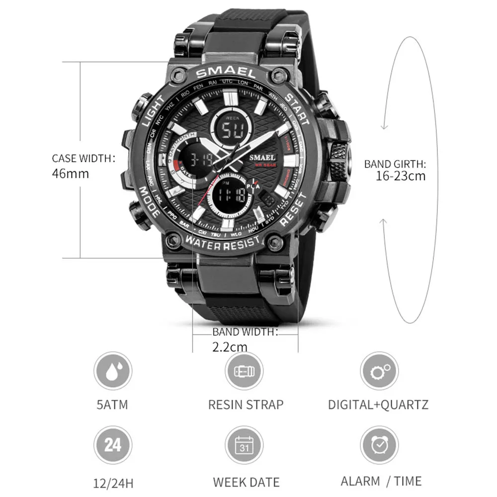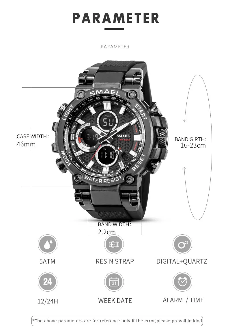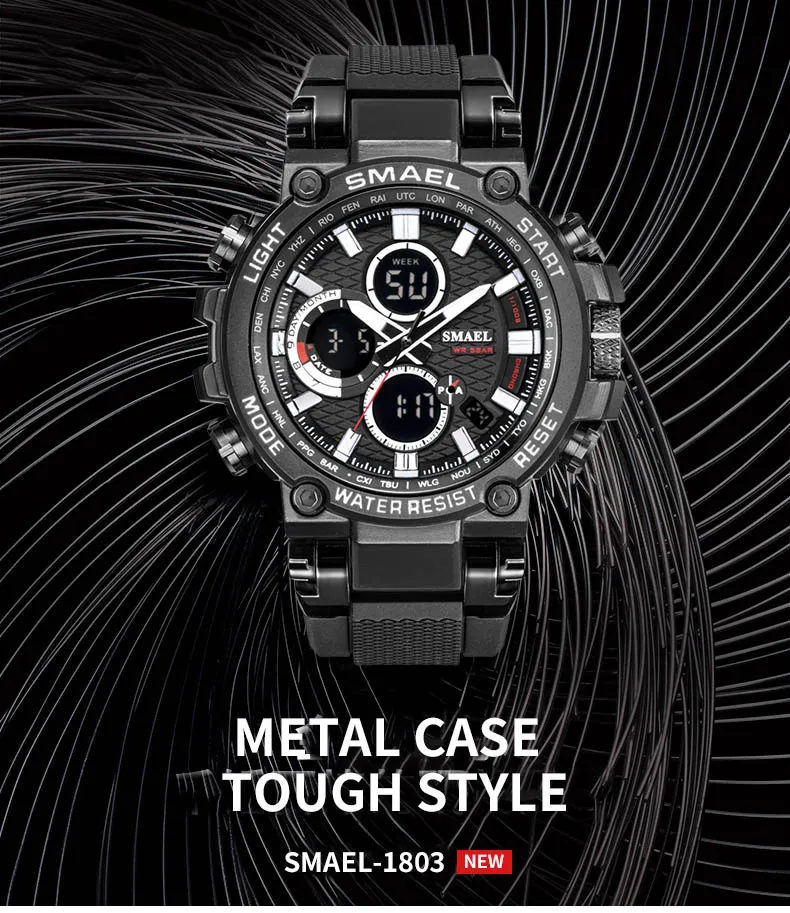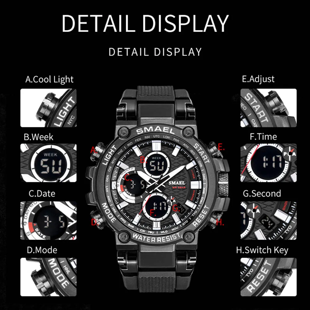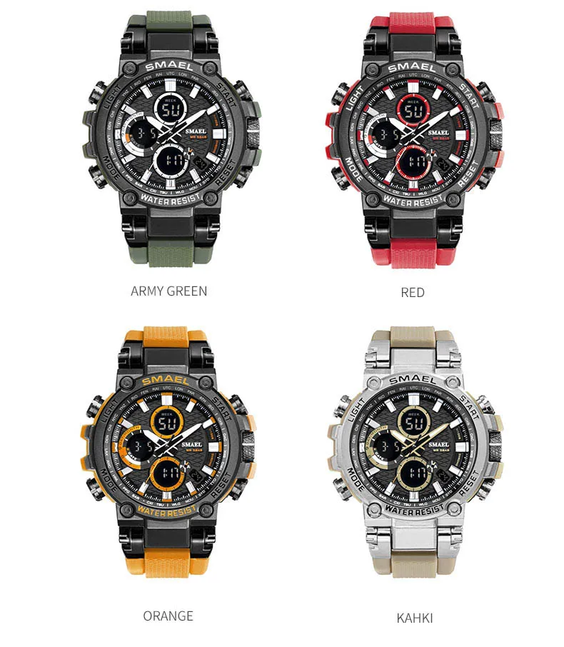 Спортивные часы SMAEL, водонепроницаемые мужские часы, светодиодные цифровые часы, военные мужские часы, мужские часы 1803, мужские часы