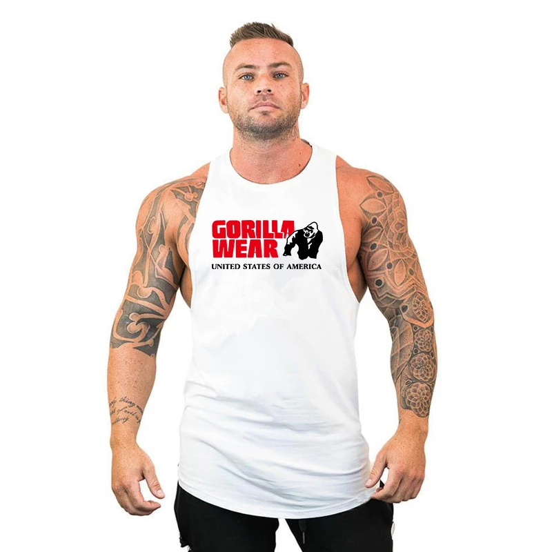 Стильная хлопковая мужская майка без рукавов с надписью Gorilla, ма...
