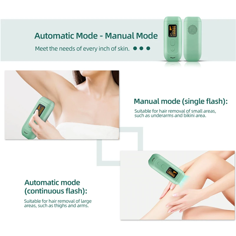 1,990000 вспышек: IPL интенсивный импульсный светильник непосредственно облучен на волосяных фолликулах. Светильник подходит и мягко предотвращает рост волос, безопасен, не оказывает побочных эффектов и безболезнен.