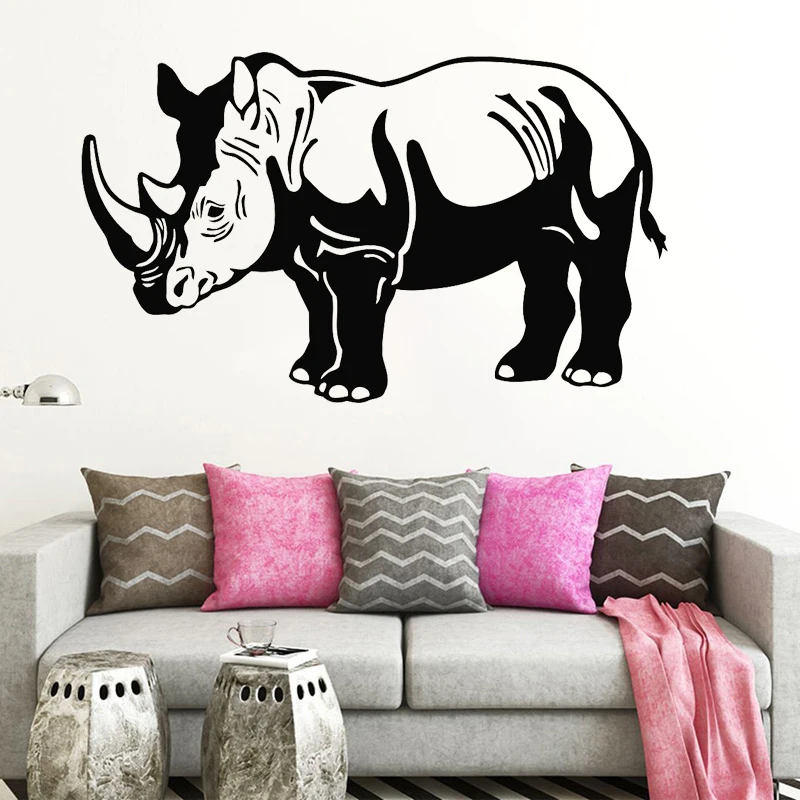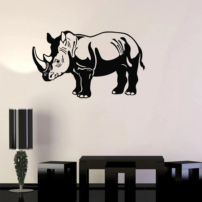 Носорог стены Стикеры милый Рог носорога виниловые наклейки в виде Фотообоев c переводными картинками в африканском стиле Пастбища животных домашний декор детей Спальня Гостиная украшения