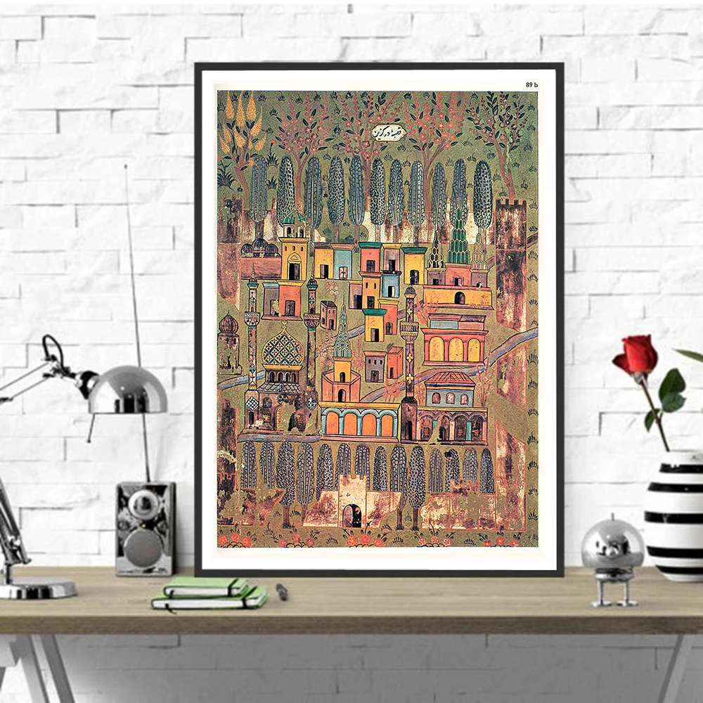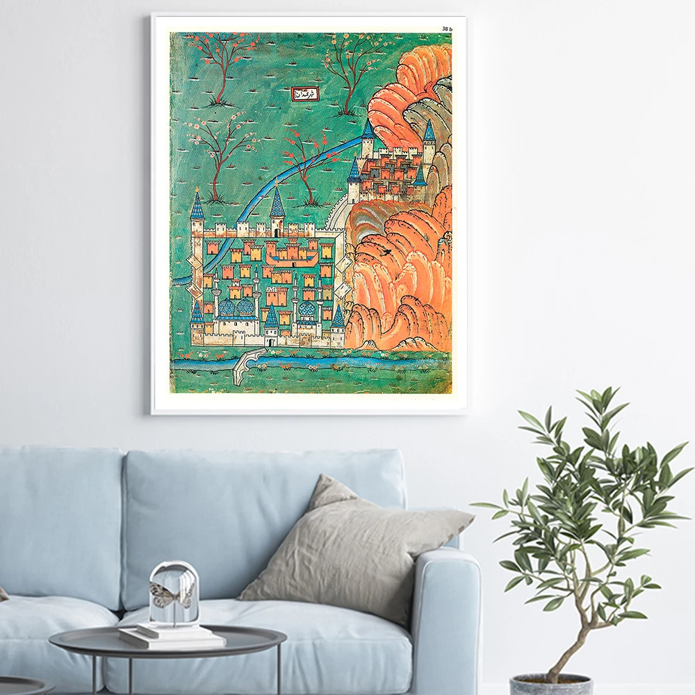 Красочная картина с Оттоманской картой, Картина на холсте, винтажная картография матраки Nasuh, настенный художественный плакат для гостиной, домашний декор