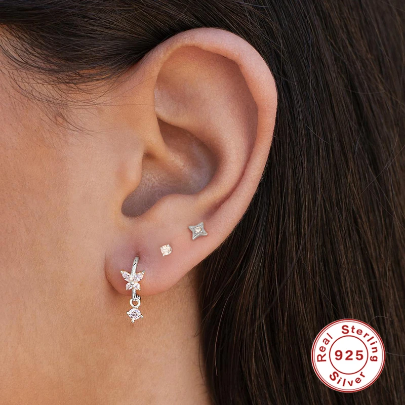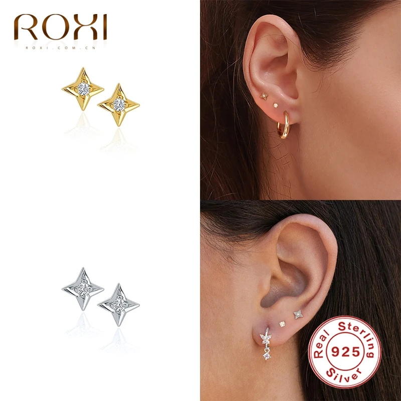 Мини-серьги-гвоздики "Звёзды" ROXI 925 для женщин и мужчин, изящное повседневное Ювелирное Украшение для пирсинга, серьги из стерлингового серебра 925 пробы