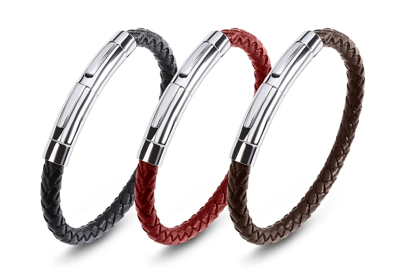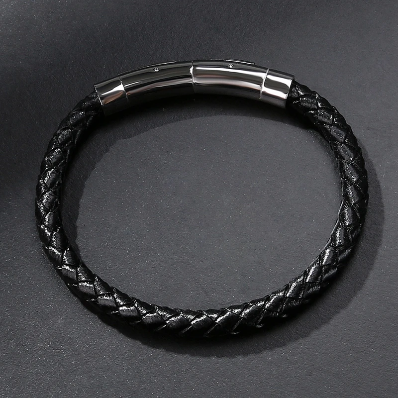 Модный плетеный кожаный мужской браслет, черный гладкий браслет из ...