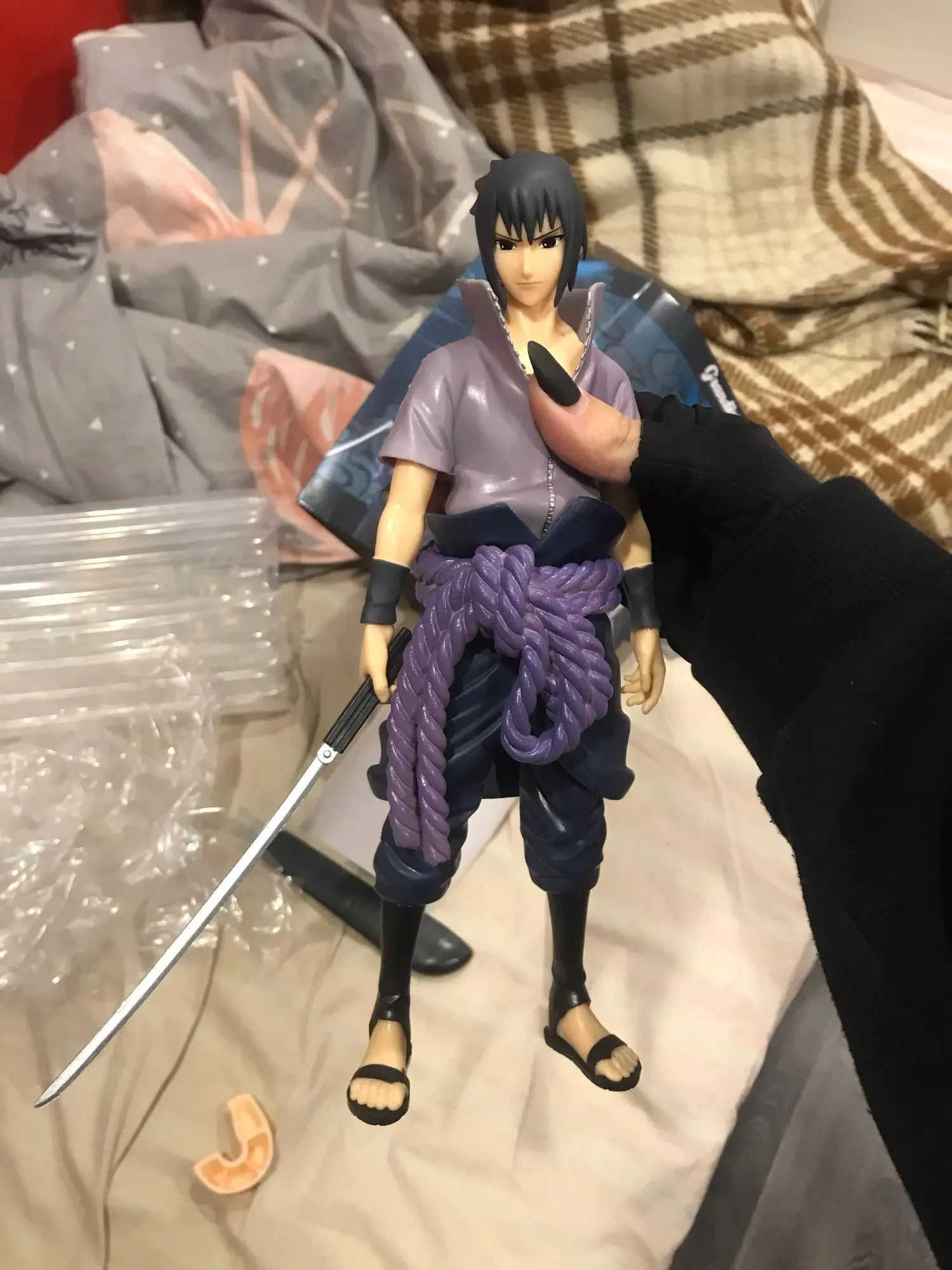 Моя первая фигурка, так что из за небольшого шока, я закрываю глаза на ляпы. Но их довольно мало. Единственное что, я понимаю что это не оригинал, но у фигурки есть неприятные потертости резины. А так, лицо у него на удивление хорошее. Печать четкая и, что самое главное, ровная. Коробка пришла в сложенном виде и помятая. Это жалко. Но так, на 5 натянет. Я видела какие бывают фигурки на али, и эта, по сравнению с ними, просто вау.