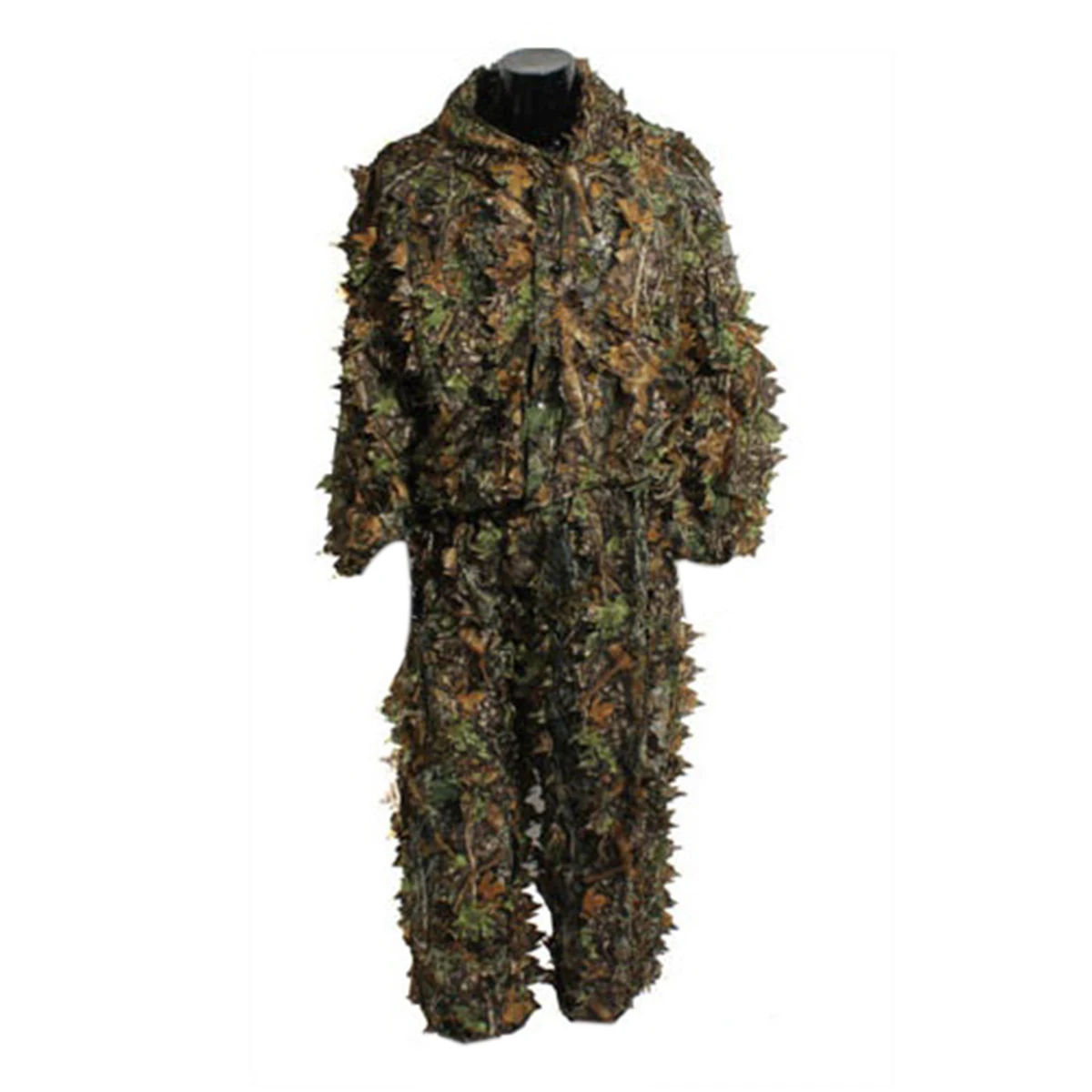 Камуфляжная камуфляжная одежда Geely с объемными листьями, куртка на кулиске с капюшоном и брюки с эластичным поясом, уличный охотничий костюм, комплект