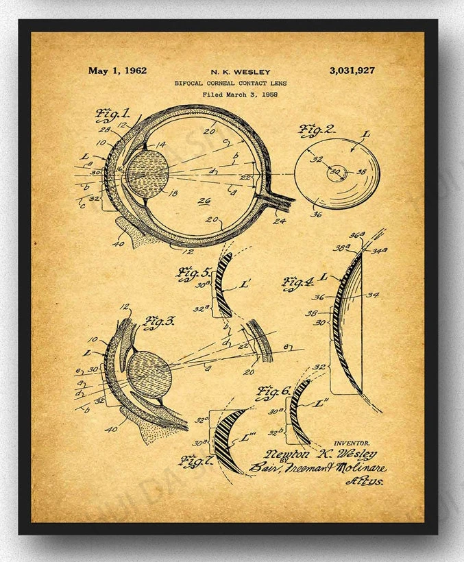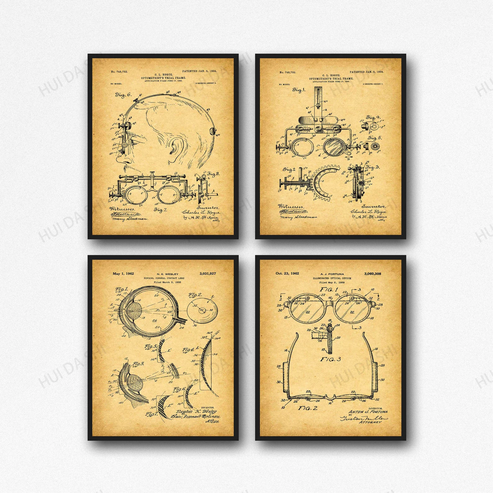 Офтальмологические изобретения, оптический настенный искусство, искусство глаз, 4 принта, офисный декор, холст, печатный плакат
