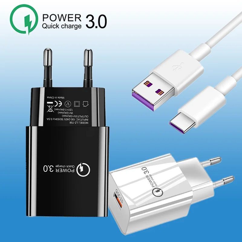 Универсальное настенное зарядное устройство USB Мобильный телефон для Samsung, Xiaomi, Huawei, QC 3,0, адаптер для зарядки, кабель Micro-C