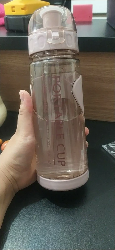 Префектная бутылка, очень хорошего качества, цвет крышки блестящий, остальное прозрачное, чувствует себя прочным и негибким пластиком, легко прикрепляется для переноски в руке, он гладкий, но все же подходит под размер руки, очень хорошо сделано, что у него есть мл. Жидкость для измерения потребления, крышка имеет страховку, чтобы сделать щелчок и открыть, не заставляя его заставить, крышка для питья хорошо разработана, практична и эффективна при воздействии воды, не создавая воздуха и принимая больше воздуха, чем воды, короче говоря, это практично и стоит того. Я рекомендую товар и продавец прибыл через 20 дней.