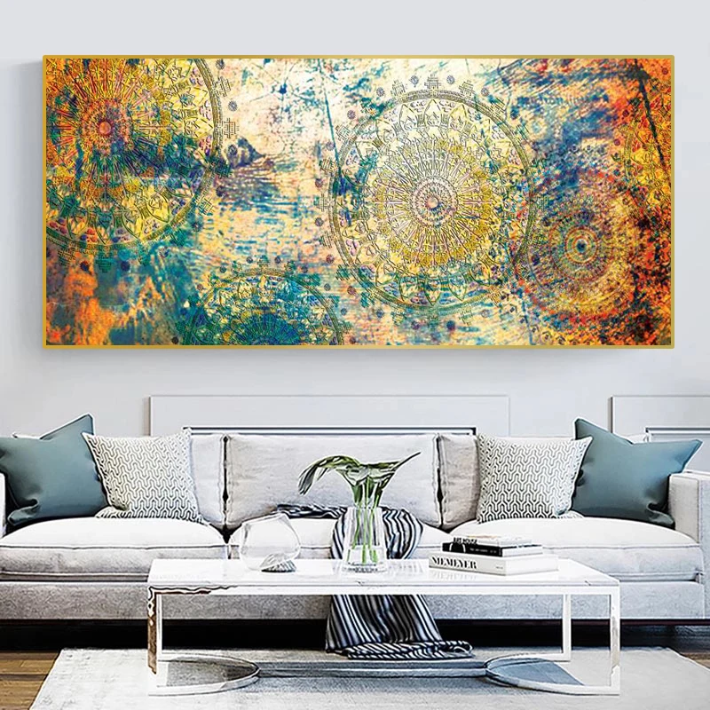 Винтажная живопись золотым компасом, украшение для дома, индийская древняя римская настенная живопись, картина, постер, математические формы