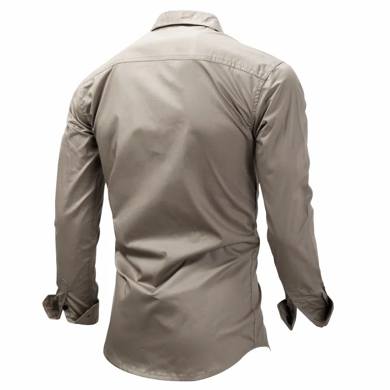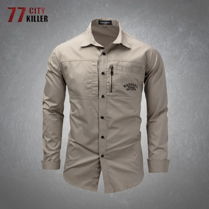 Мужская рубашка в армейском стиле, новая весенне-осенняя хлопковая тонкая деловая рубашка на молнии с вышивкой и длинными рукавами, мужские повседневные топы с отложным воротником