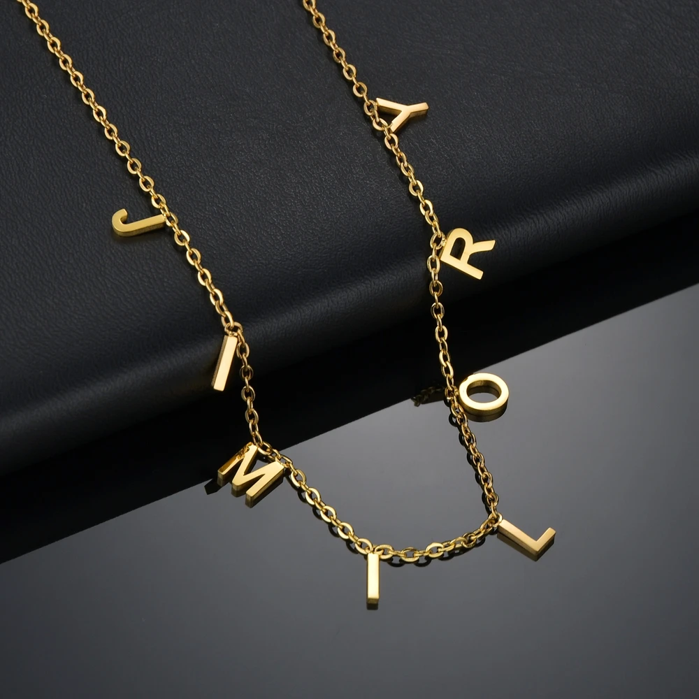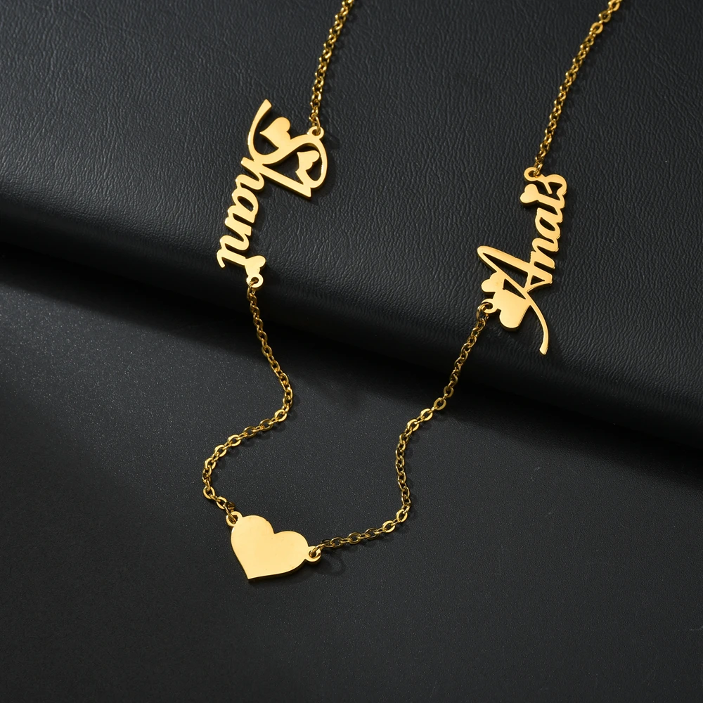 Имя:Персонализированная цепочка из нержавеющей стали с именами на заказ, Подвеска для женщин, колье с буквами, ожерелье с сердечками, ювелирные изделия, подарки