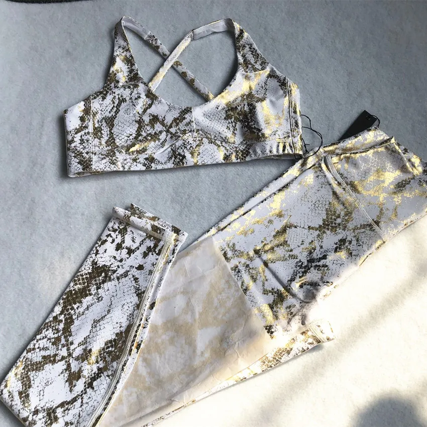 2022 металлический Змеиный комплект для йоги леггинсы с высокой пос...