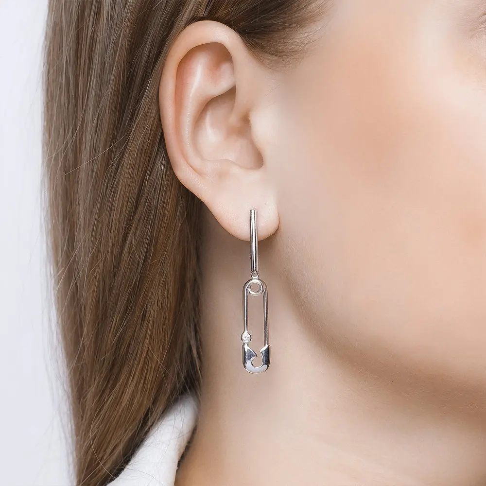 Серьги SKLV из серебра с фианитамиЭстетика гранжа и брутальный панк-шик возвращаются на модную арену в виде во всех смыслах «прикольных» аксессуаров. Стоит приколоть булавку-брошь на лацкан оверсайз-жакета или пальто – и ты уже в теме. Серьги-булавки внесут здорового бунтарского духа в самые скучные шаблонные образы или, напротив, круто стилизуют подчёркнуто модные. Выбирай акцентные украшения, с которыми так просто выделяться из толпы!
