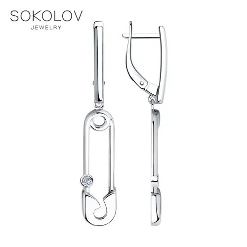 Серьги SOKOLOV из серебра с фианитами, Серебро, 925, Женские, Серьг...