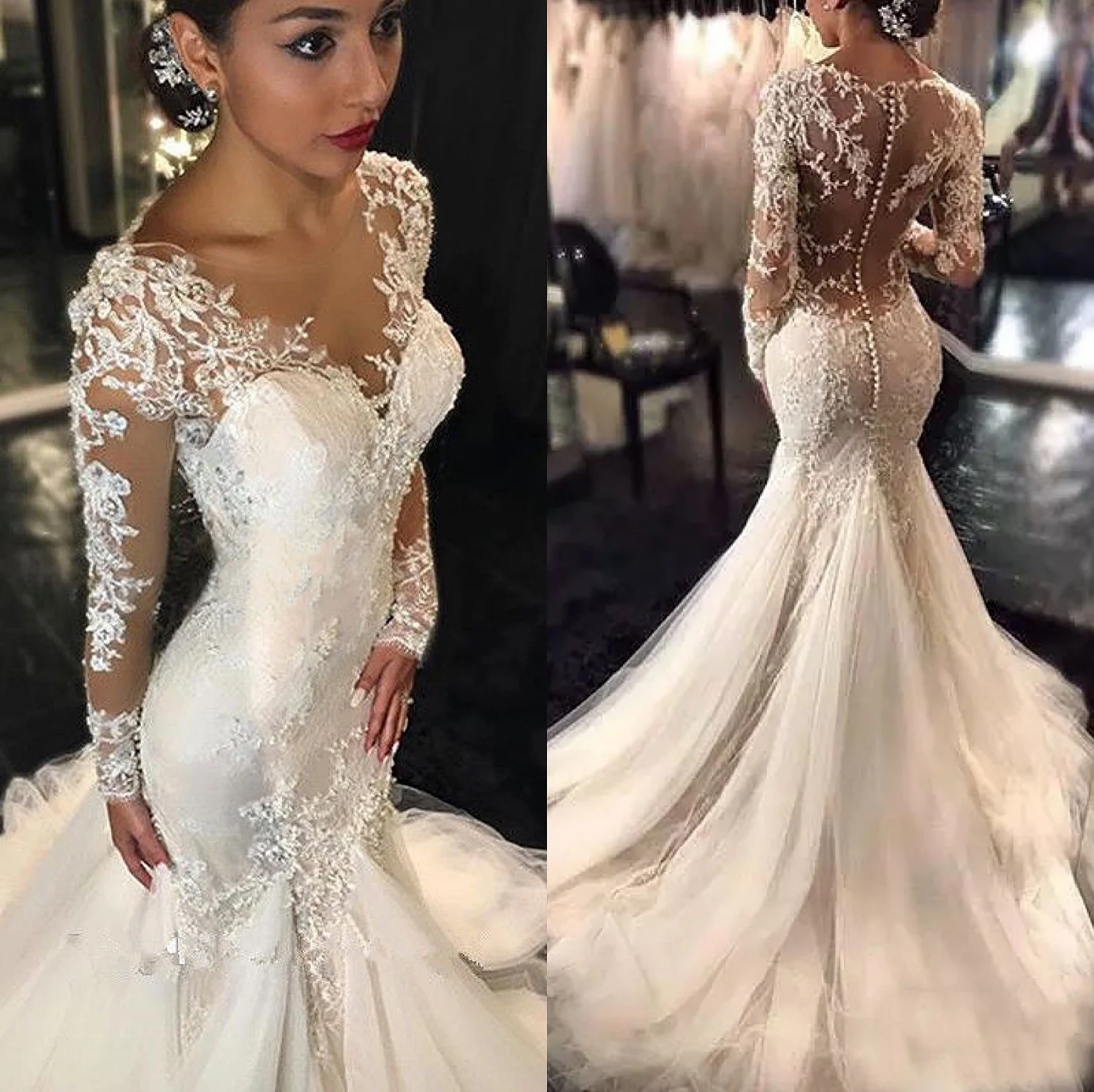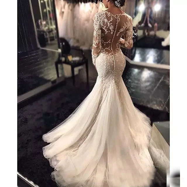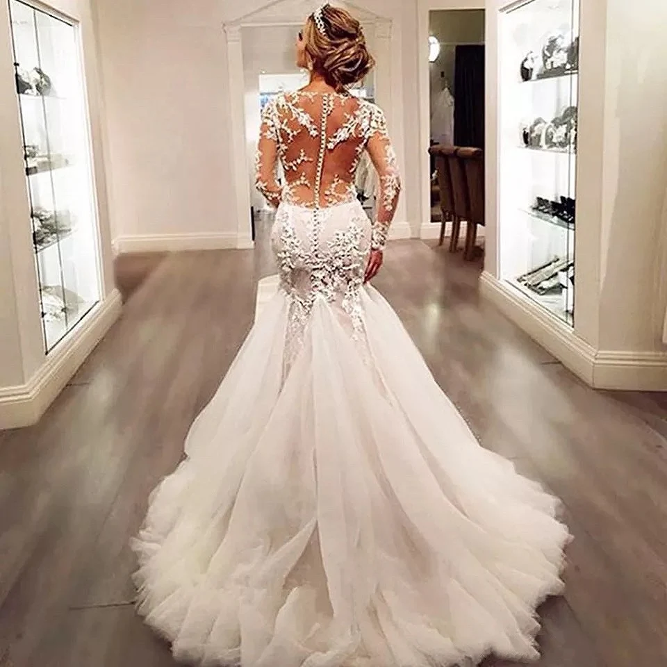 MYYBLE Новые свадебные платья с длинным рукавом Русалка 2022 кружев...