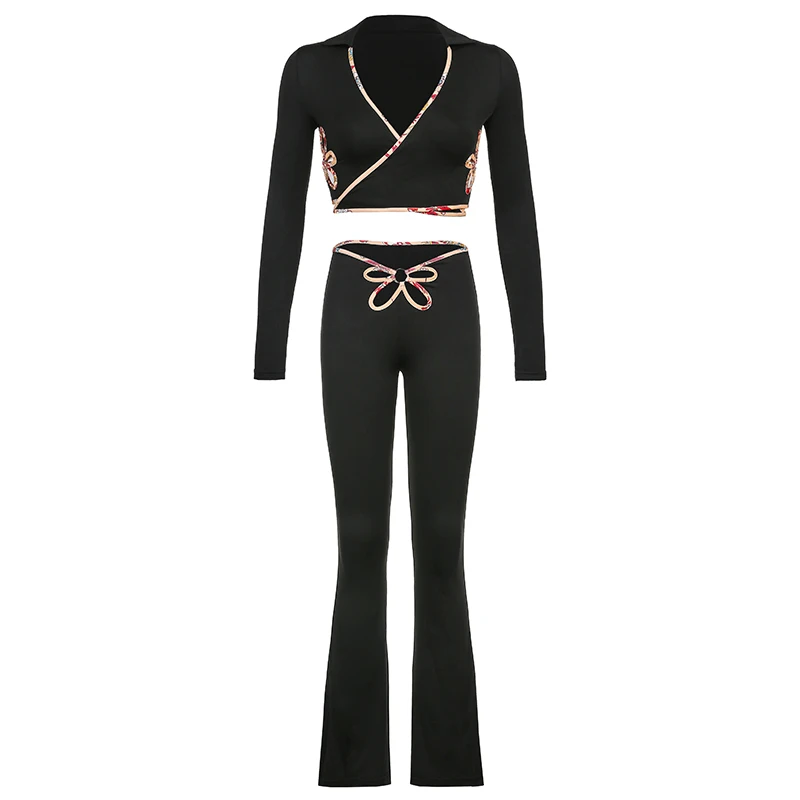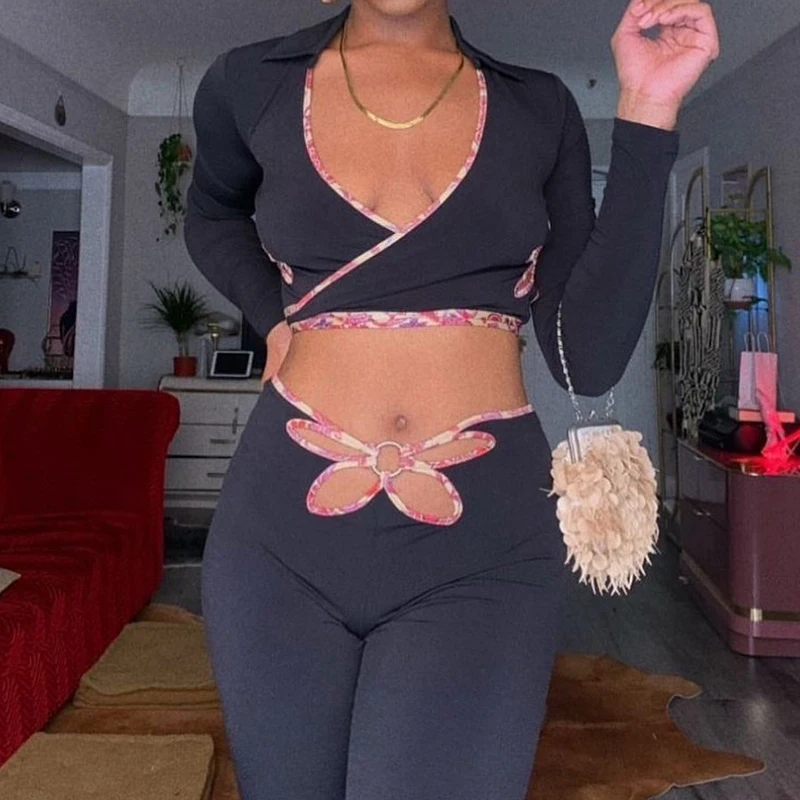 Комплект из 2 предметов Rapcopter y2k, цветочный вырез, женские укороченные топы и спортивные штаны, Милый Винтажный костюм цвета хаки с завязкой, уличная одежда