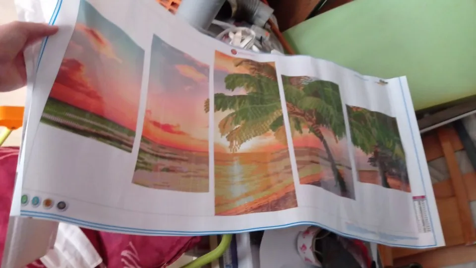 Это совсем не то, что я ожидал, я думал, что это все бриллианты, а часть неба гладкая, у нее есть только бриллианты, море и пальмы. Я думал, что это будет больше, и они будут квадратными, но они круглые. Когда я это сделаю, я узнаю, как это выглядит, я думаю, что это хорошо.