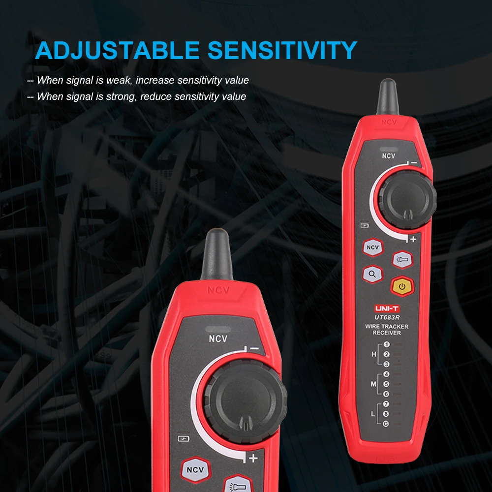 Устройство является интеллектуальным проводным трекером, которыйСостоит из передатчика и приемника, этот комплект разработан сСильная способность анти-помех. Приемник может быстро иТочно найдите целевой кабель. Этот комплект может автоматически идентифицироватьОткрытый, короткий, полярный и быстро отличает сбой кабеля.