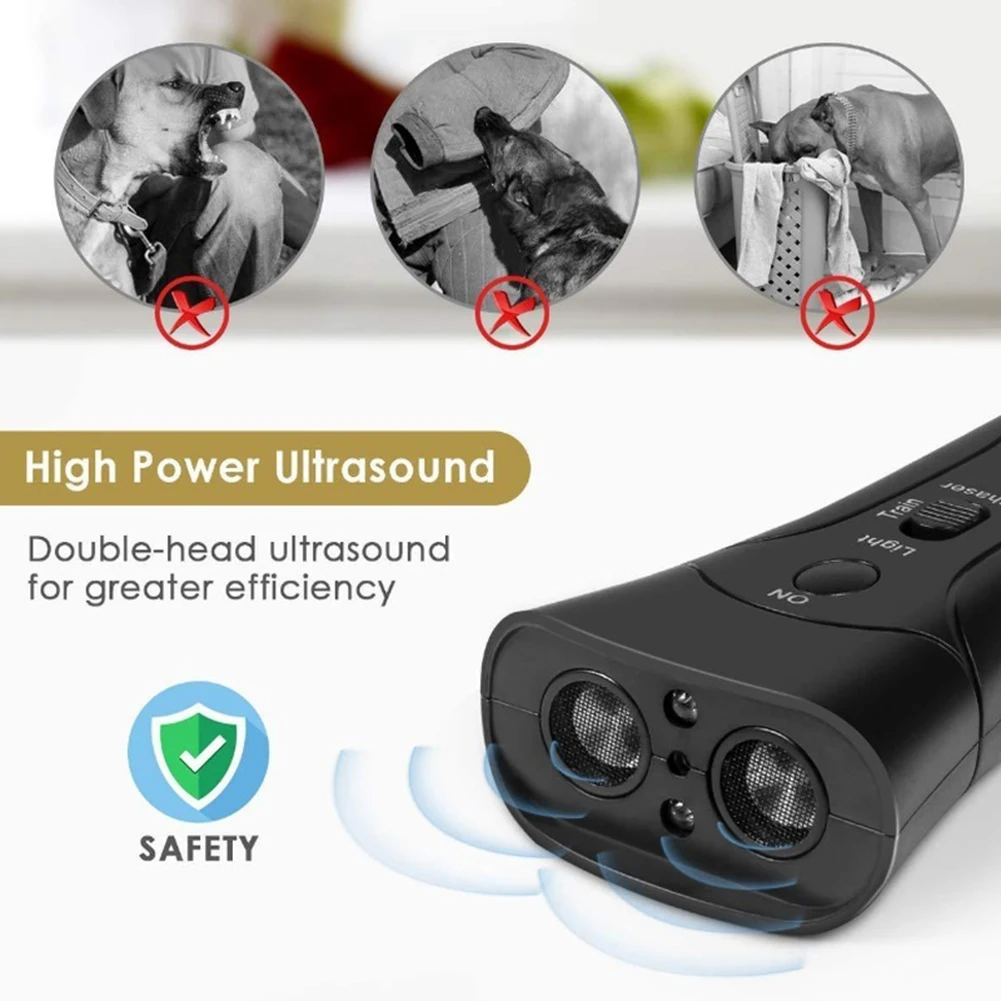 Двухголовый Ультразвуковой Отпугиватель собак Портативный светодиодный фонарик Стоп лай инструмент