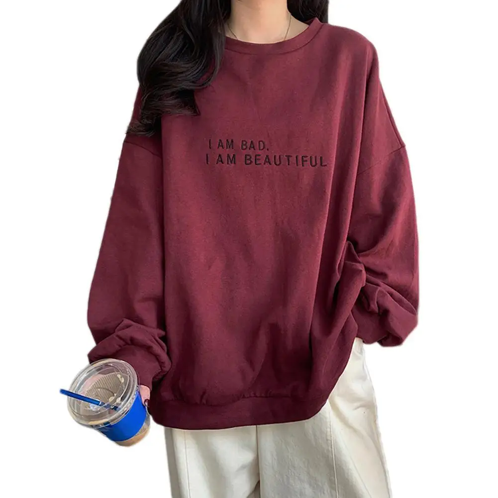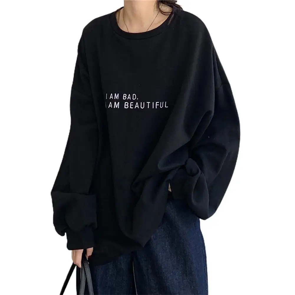 Корейские женские топы, Модный пуловер с длинным рукавом и круглым вырезом, Свитшот оверсайз с буквенным принтом, 2021