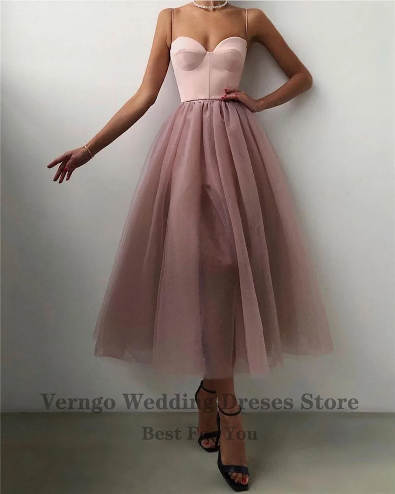 Простое черноепыльное розовое ТРАПЕЦИЕВИДНОЕ короткое вечернее платье Verngo, атласное Тюлевое платье на бретелях-спагетти, платье до середины икры для выпускного вечера