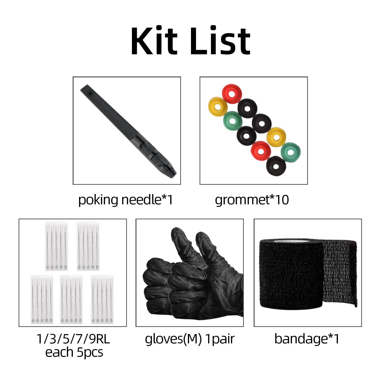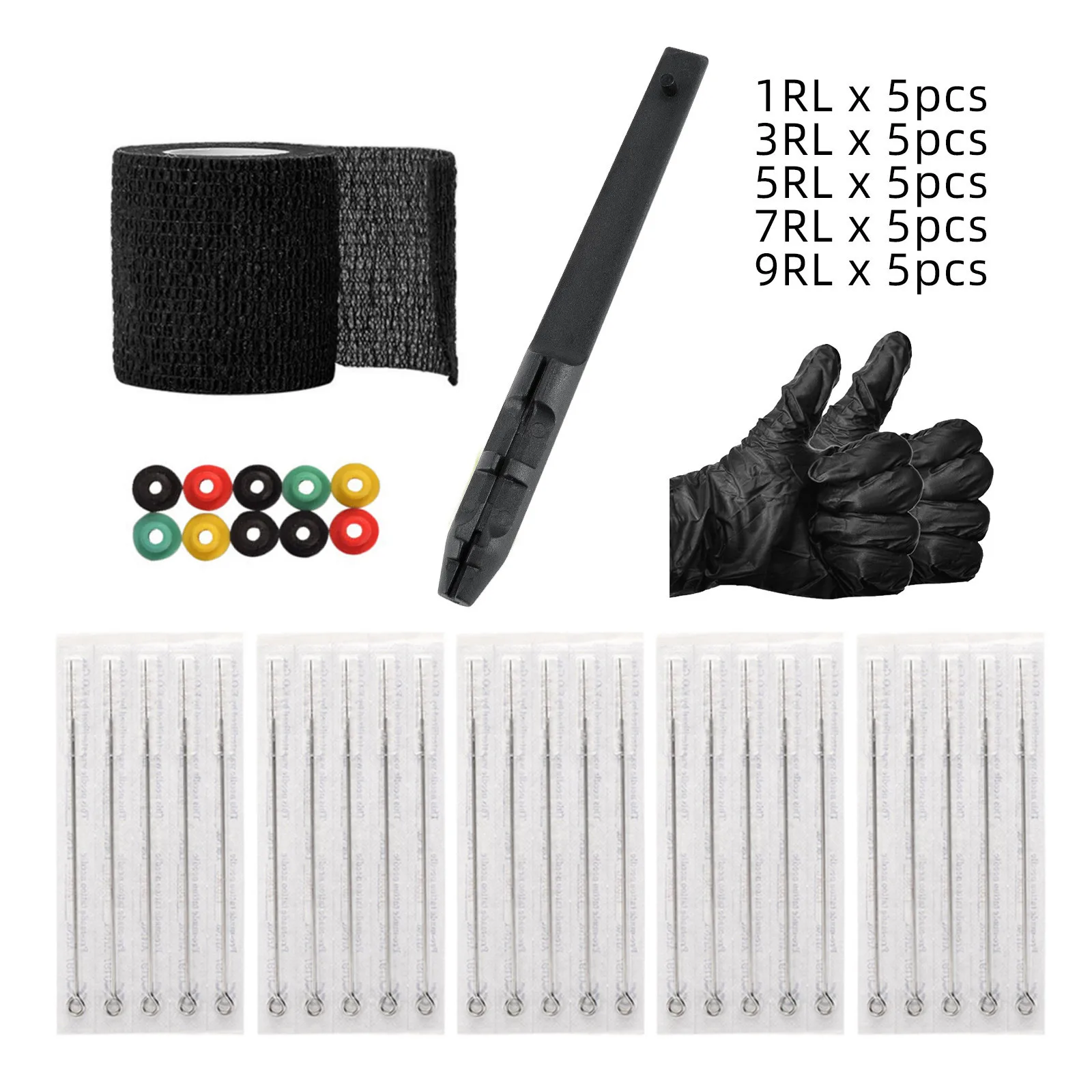 Ручка для татуировки 1 шт., повязка 1 шт., 1 пара одноразовых черных перчаток, подушка для татуировки 10 шт., 1RL иглы для татуировки 5 шт., 3RL иглы для татуировки 5 шт., 5RL иглы для тату 5 шт., 7RL иглы татуировки 5 шт, 9RL иглы татуировки 5 шт