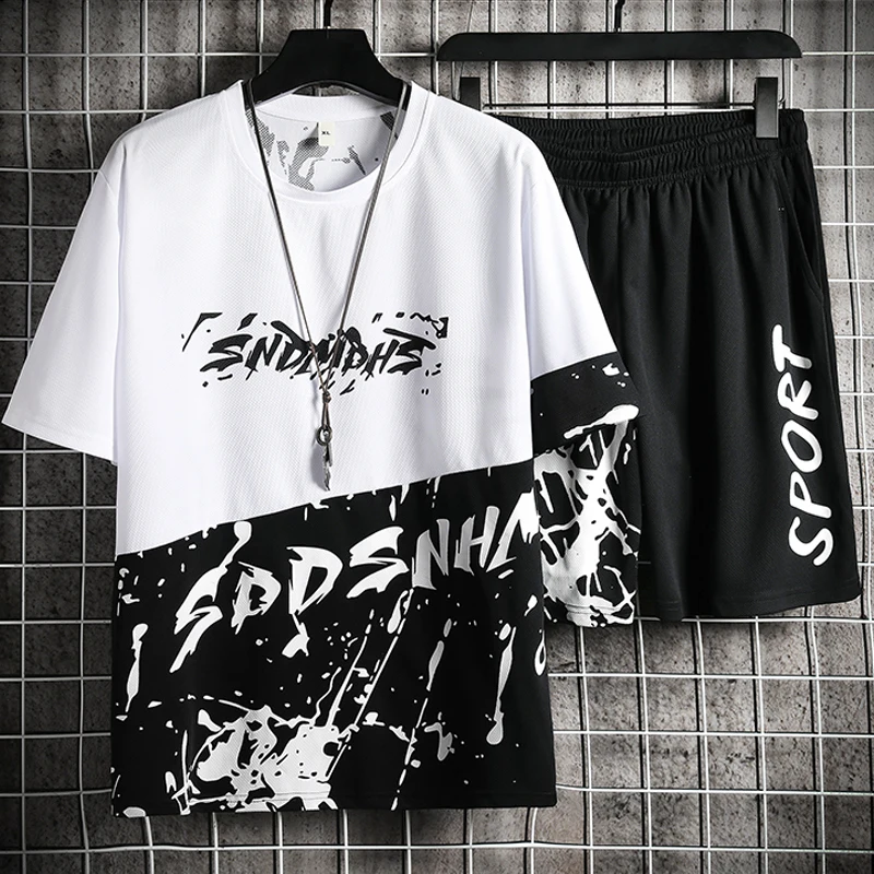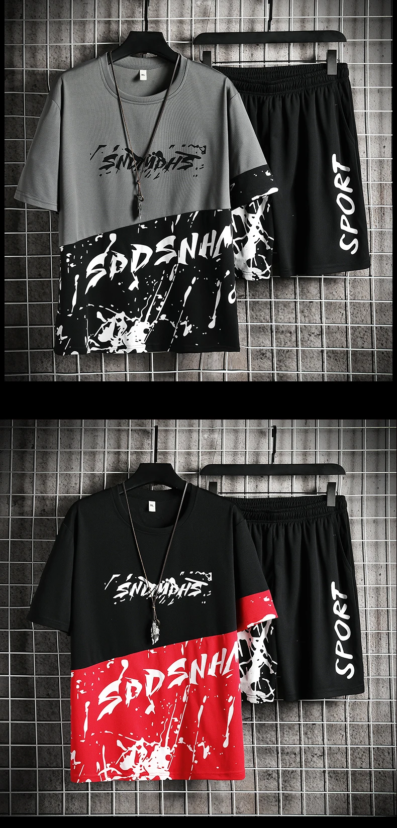 Мужской летний спортивный костюм, футболка с принтом + шорты, спортивная одежда футболки с коротким рукавом и штаны