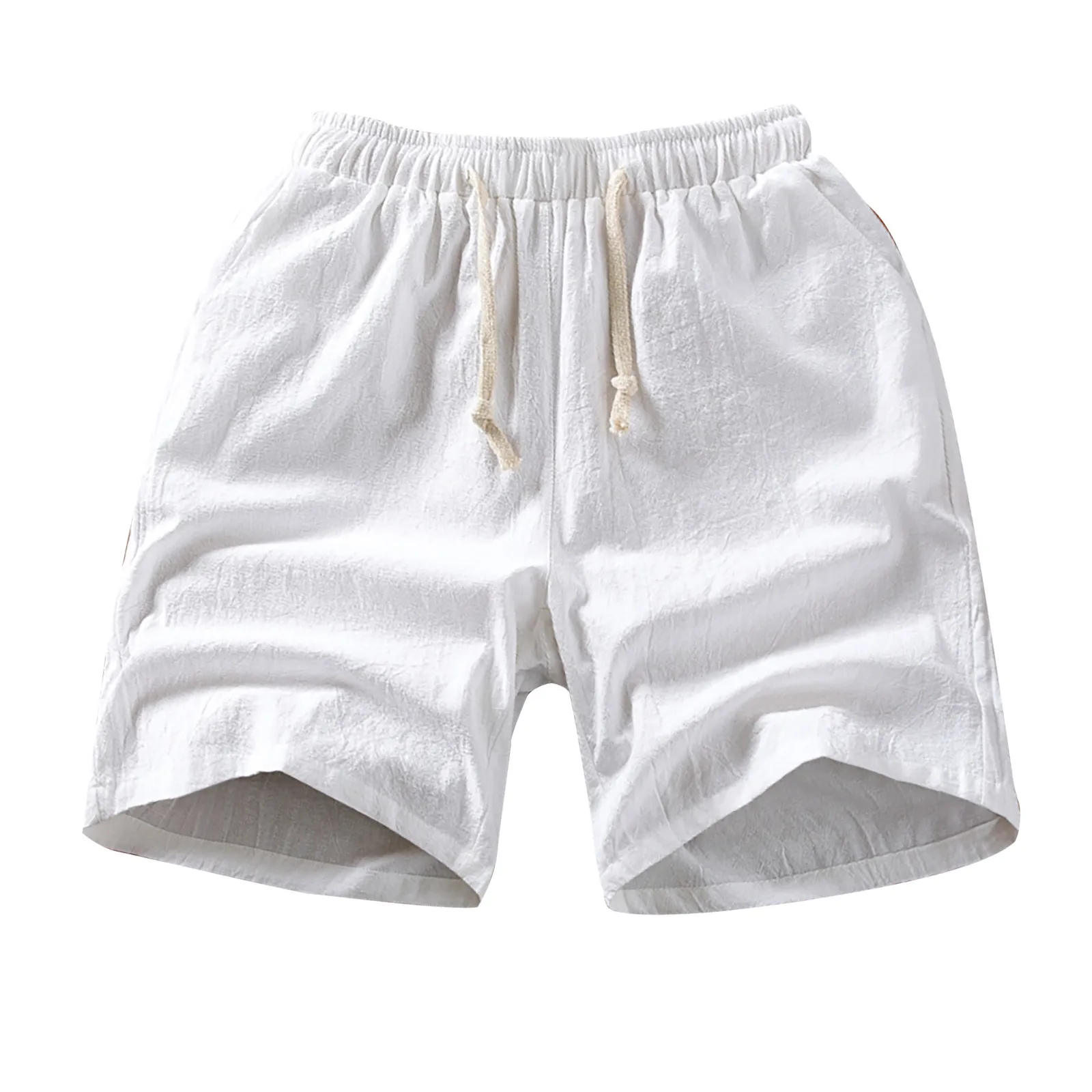 Мужской Хлопковый льняной комплект, Однотонная футболка с коротким рукавом, повседневный комплект большого размера
