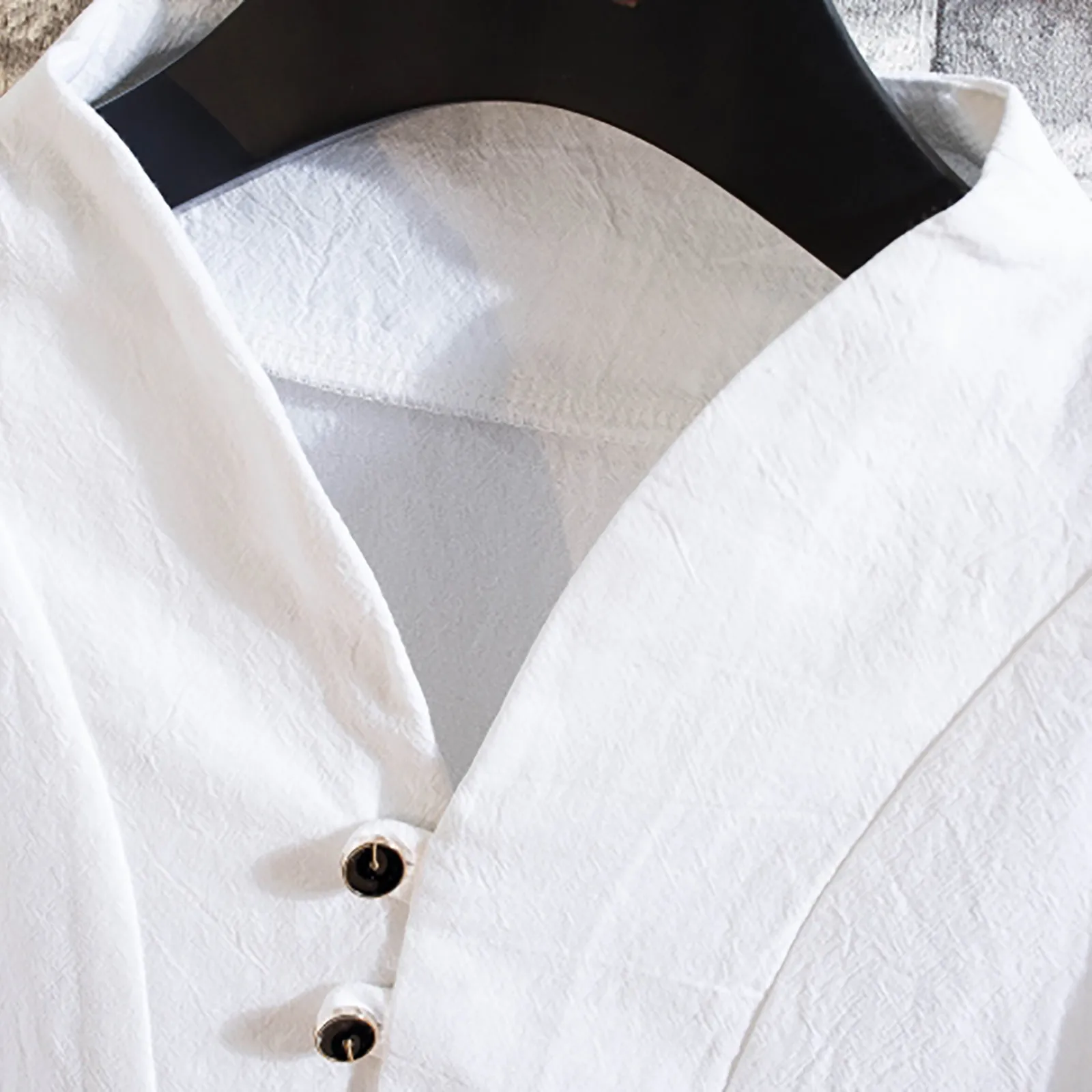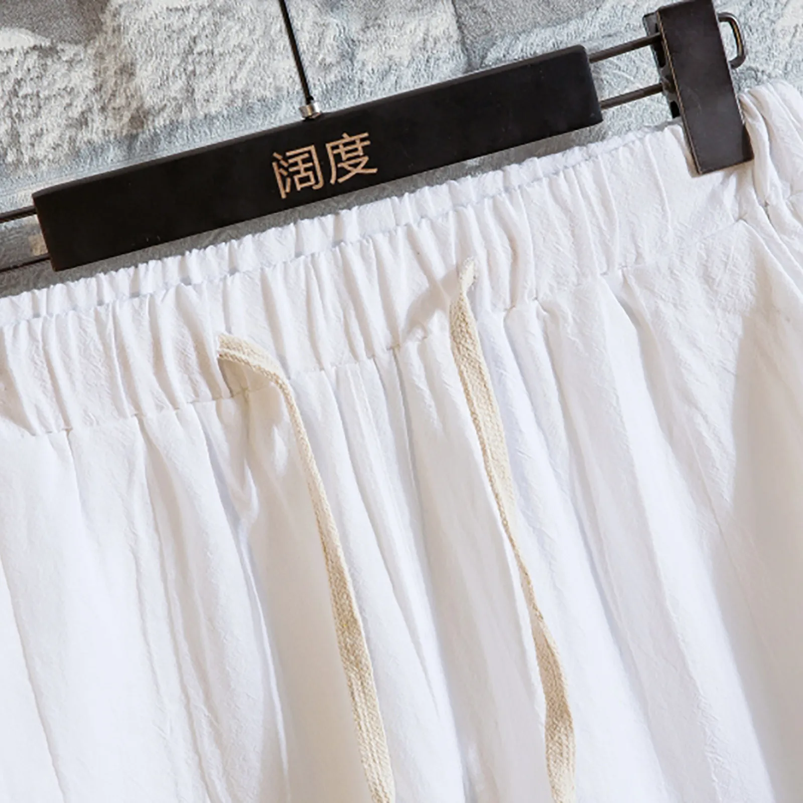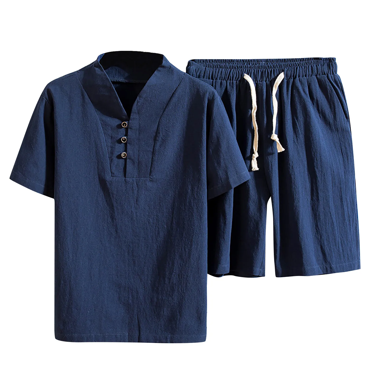 Костюм спортивный мужской однотонный в китайском стиле, льняная рубашка, шорты с коротким рукавом, удобный летний комплект из двух предметов, # g36