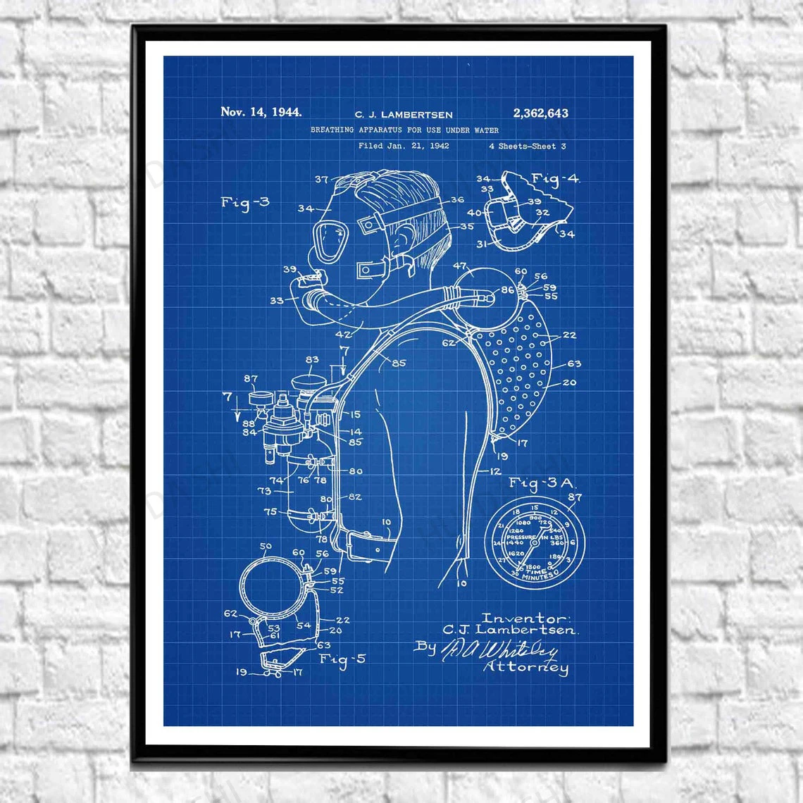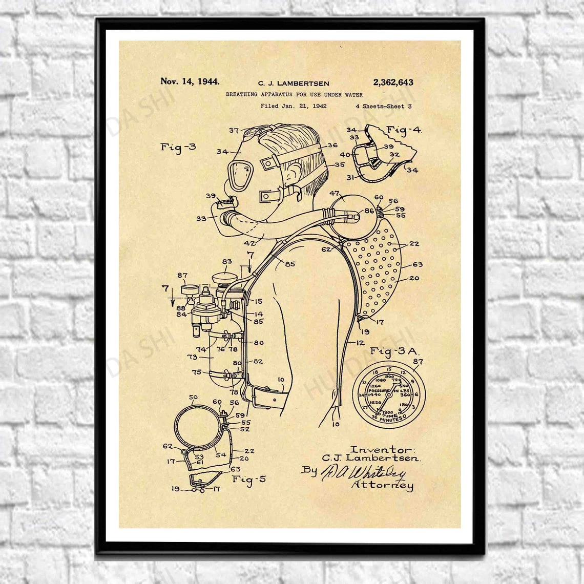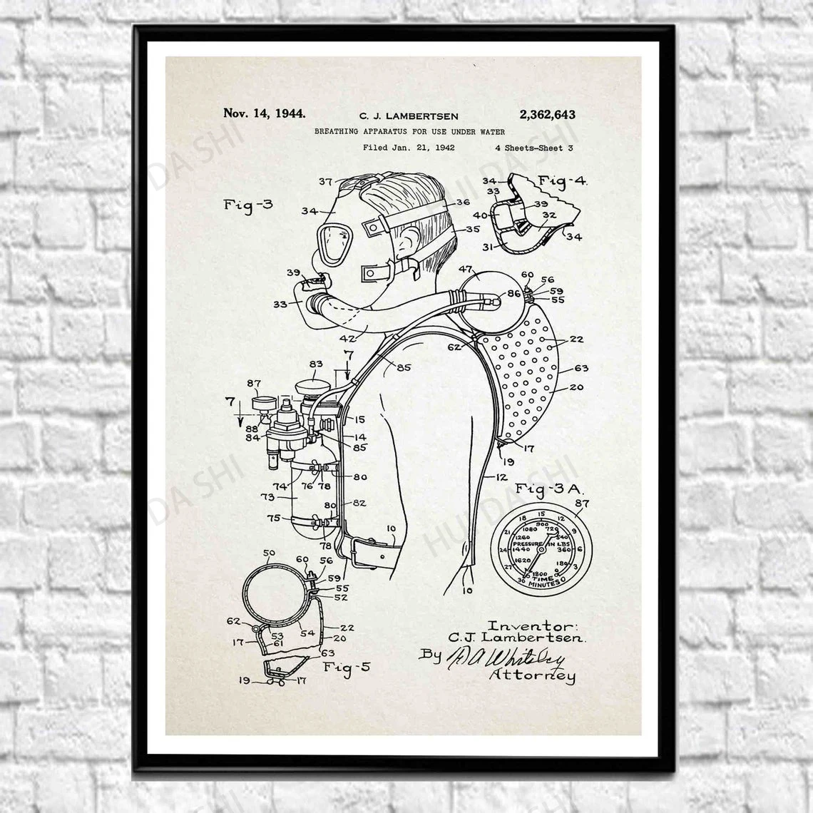 Подарочный настенный плакат для подводного плавания, Художественная печать на холсте для декорирования акваланга, запатентованная схема для дайвинга