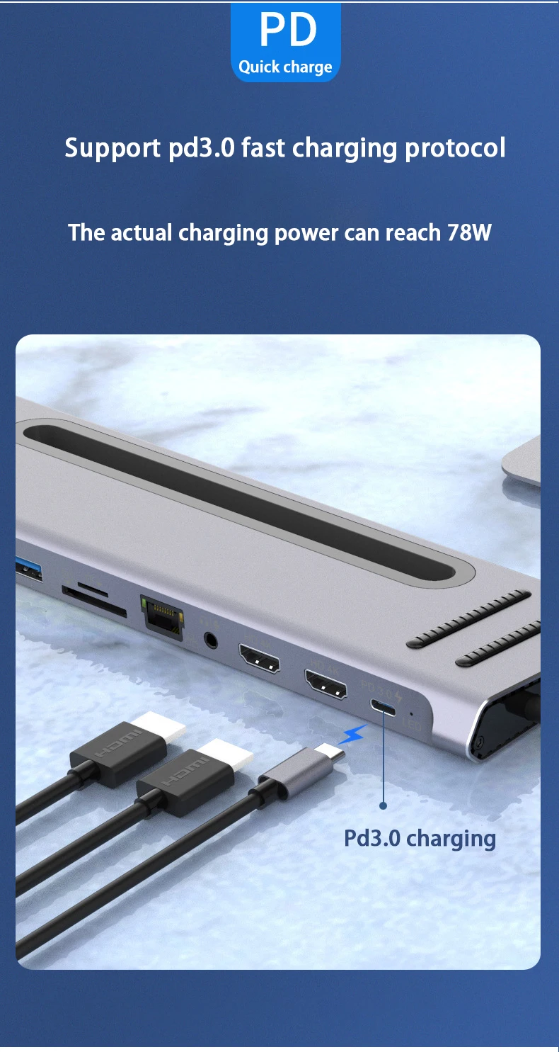 Док-станция 12 в 1, USB Type-C, HDMI, 4K, PD3.0