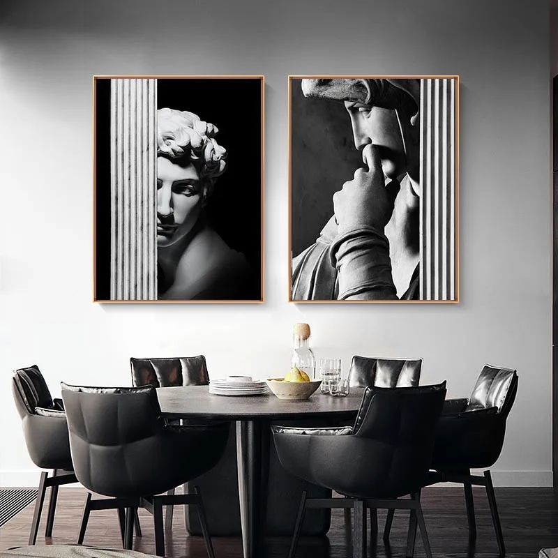 Настенная роспись, в скандинавском стиле, черно-белая, современная, ретро, римская колонна, фигурка, плакаты, гипсовая скульптура Давида, художественная картина для домашнего декора, Куадрос