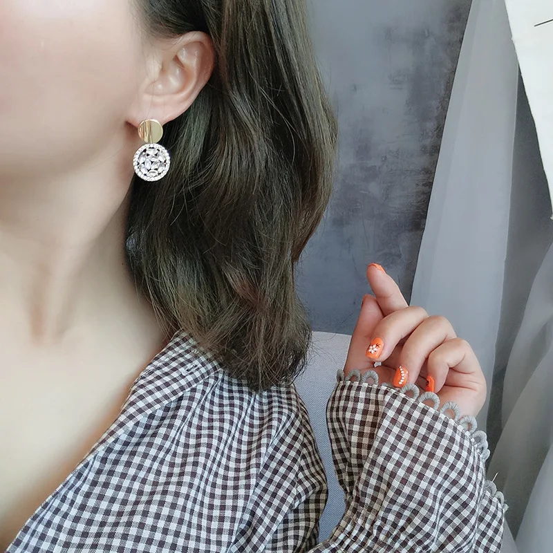 2020 новые корейские темпераментные блестящие серьги-клипсы с кристаллами, модные серьги joker, не проколотые геометрические Круглые Женские клипсы, ювелирные изделия