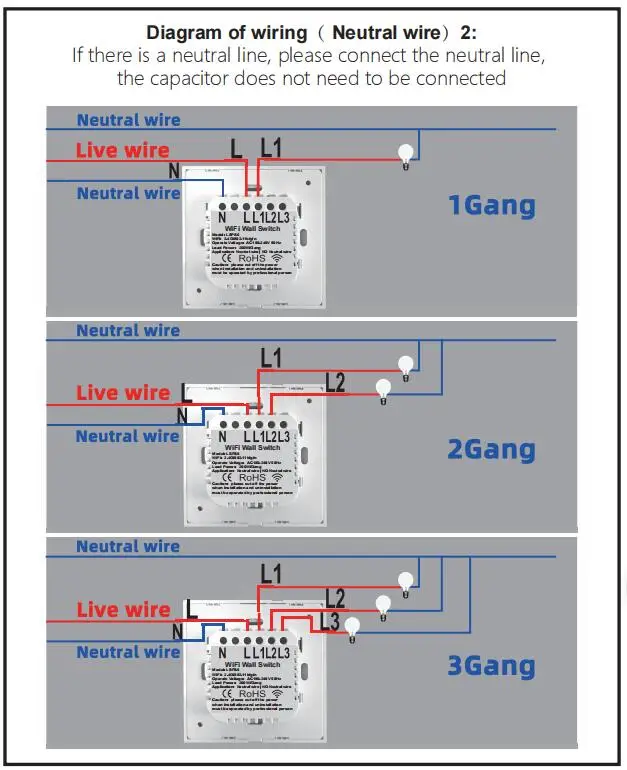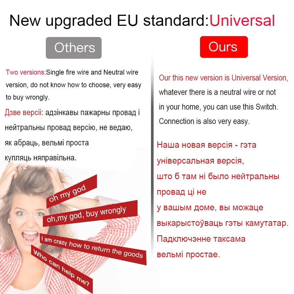Это универсальный стиль, независимо от того, есть ли нейтральная линия или нет нейтральной линии в вашем доме, вы можете использовать его, обратите внимание, что переключатель не поддерживает RF433.
