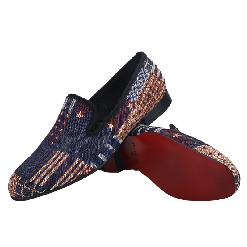 Piergitar2021 американский флаг печати Для Мужчин's Лоферы шлёпанцы для женщин для вечерние и банкет красная подошва Для мужчин; Повседневная обувь размера плюс