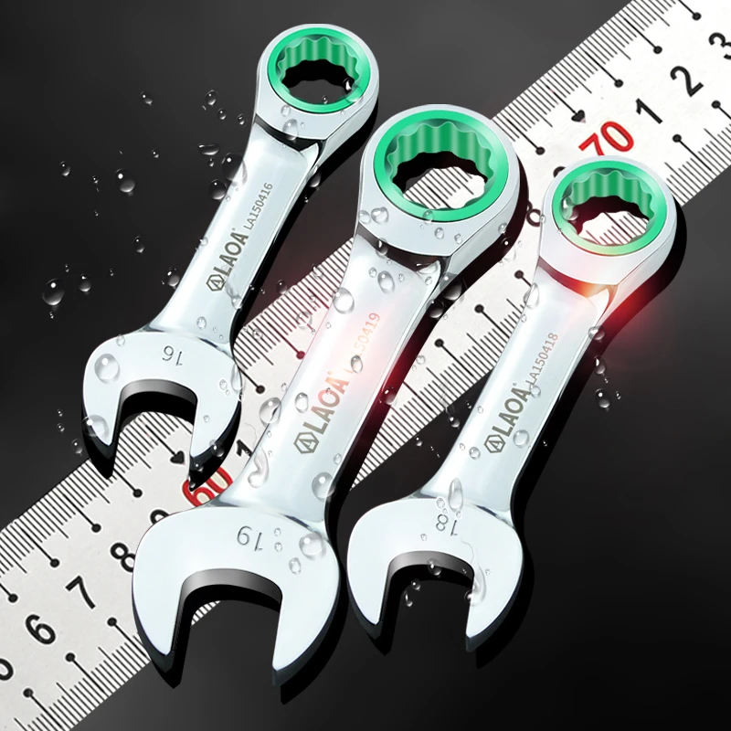 Короткий гаечный ключ LAOA, комбинированный мини-ключ с храповым механизмом для ремонта водопроводных труб, бытовой инструмент для технического обслуживания