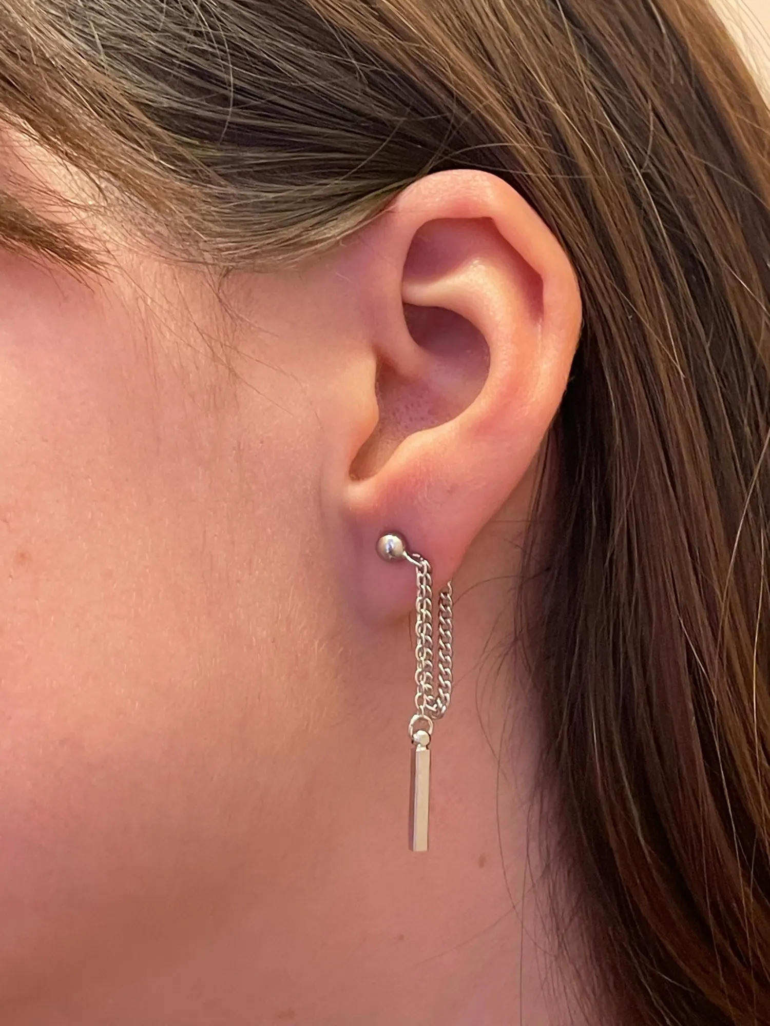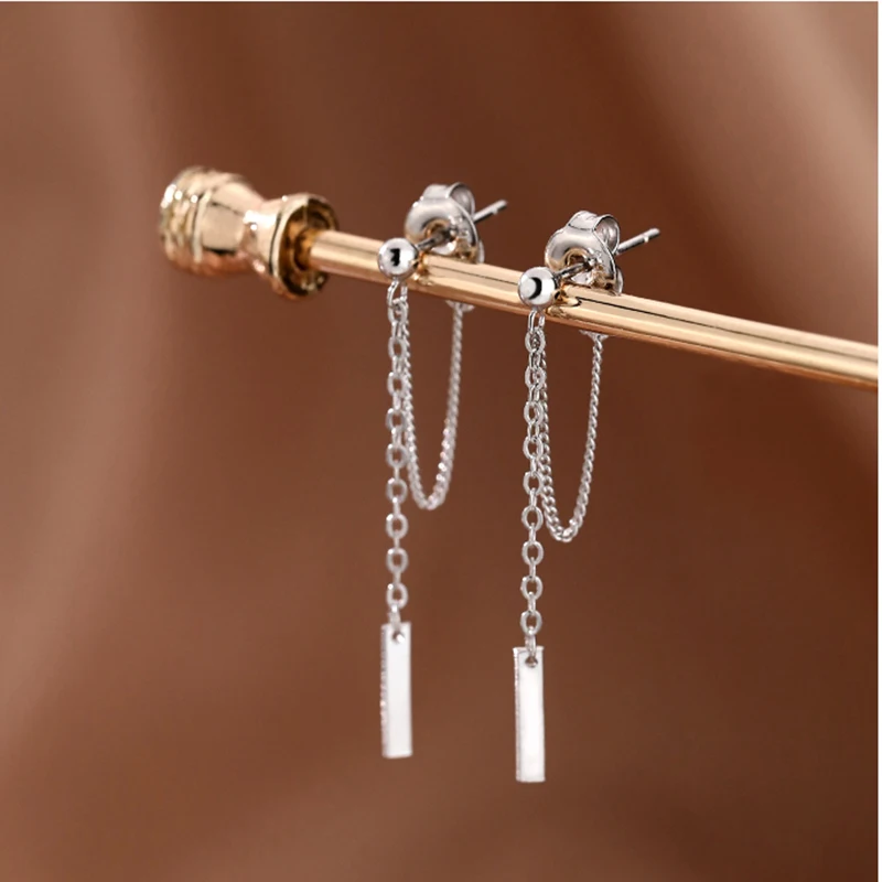 Серьги-подвески в стиле панк, серебристые, длинные цепочки задняя подвеска, гениальные, для женщин, ювелирные изделия на Рождество