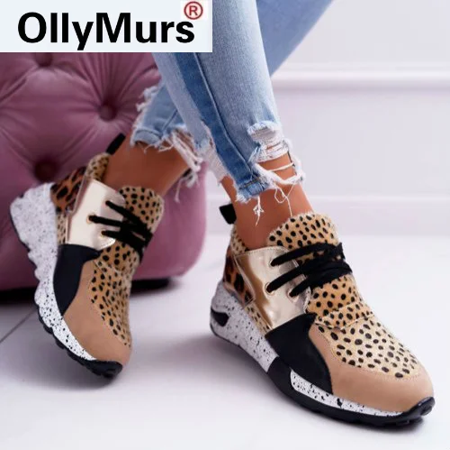 Женские кроссовки на шнуровке, дышащие кроссовки из искусственного меха с леопардовым принтом, повседневная спортивная обувь на платформе, новинка 2021