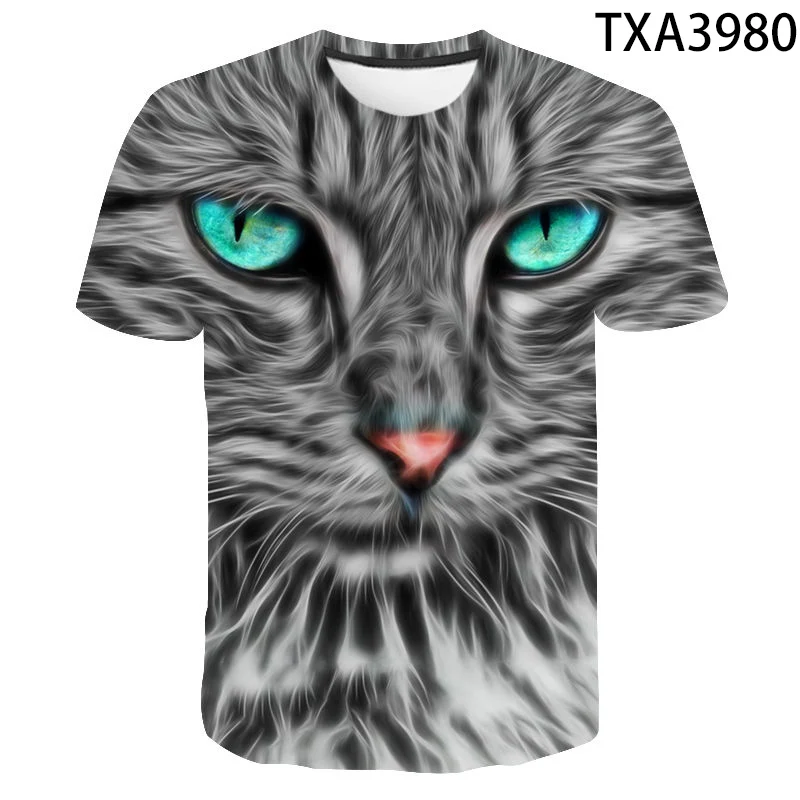 Футболка Летняя с коротким рукавом и 3D принтом, Модный повседневный топ с животными, львом, волком, кошкой, для мужчин и женщин, уличная одежда для мальчиков и девочек