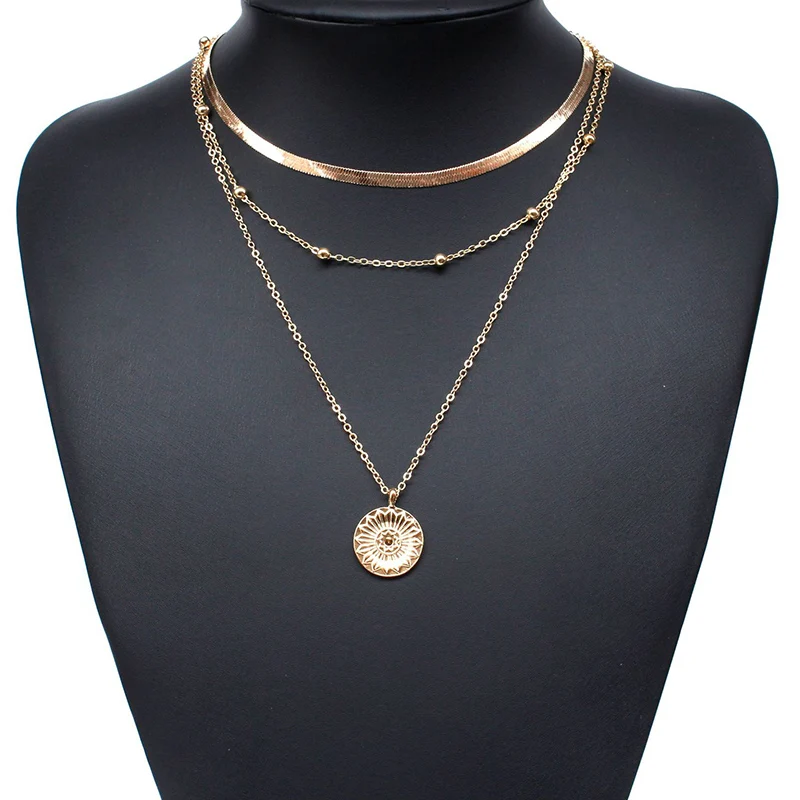 Особенности: 1. Случай ношения: свидание/ежедневно/свадьба/годовщина/предложение 2. Подарок для: подруги/мамы/жены/подруги 3. Уникальный стиль бохо, многослойный, Круглый Кулон, 3-слойная цепочка, элегантный и уникальный. 4. Не отслаивается, не тускнеет или не обесцвечивается. Он чрезвычайно долговечный и долговечный. 5. Изготовлен из сплава, высокого качества и безопасен для кожи. Примечание: 1. Фактический цвет может быть s светильник, который сильно отличается от изображения из-за различных эффектов монитора и светильник. Возможны отклонения на 1-3 см вследствие измерений вручную. Спецификация: Материал: сплав Размер: Длина: 35 см, 40 см, 45 см Кулон: 2 см в диаметре