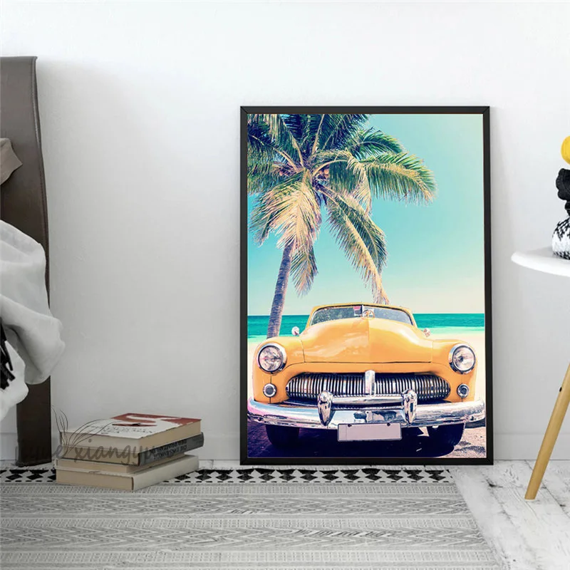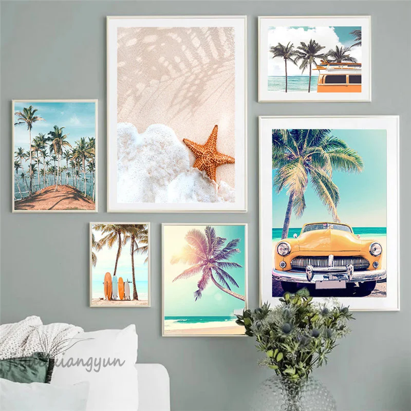 Домашний декор пляж кокосовое дерево доска для серфинга плакат пейзаж настенное искусство холст картины для гостиной Декор Куадрос