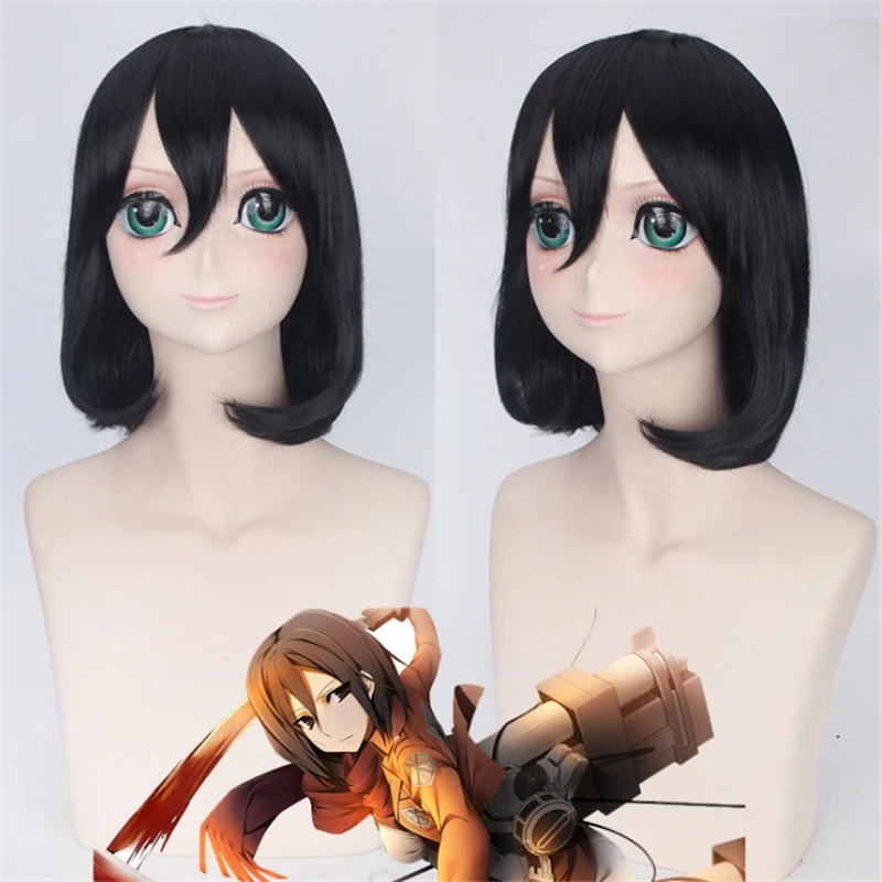 Парик Mikasa Ackerman Bob, черные короткие волосы, шелковистые прям...